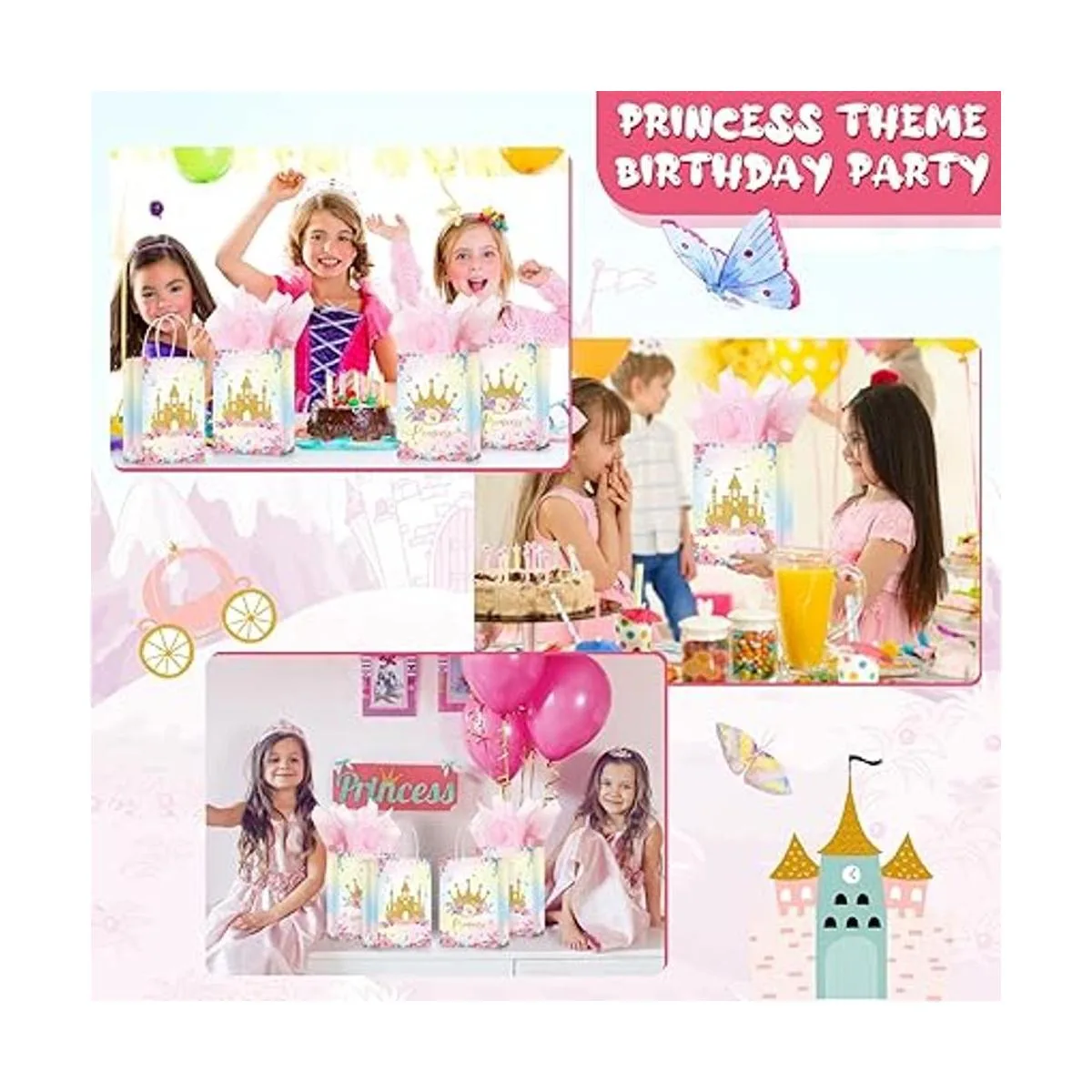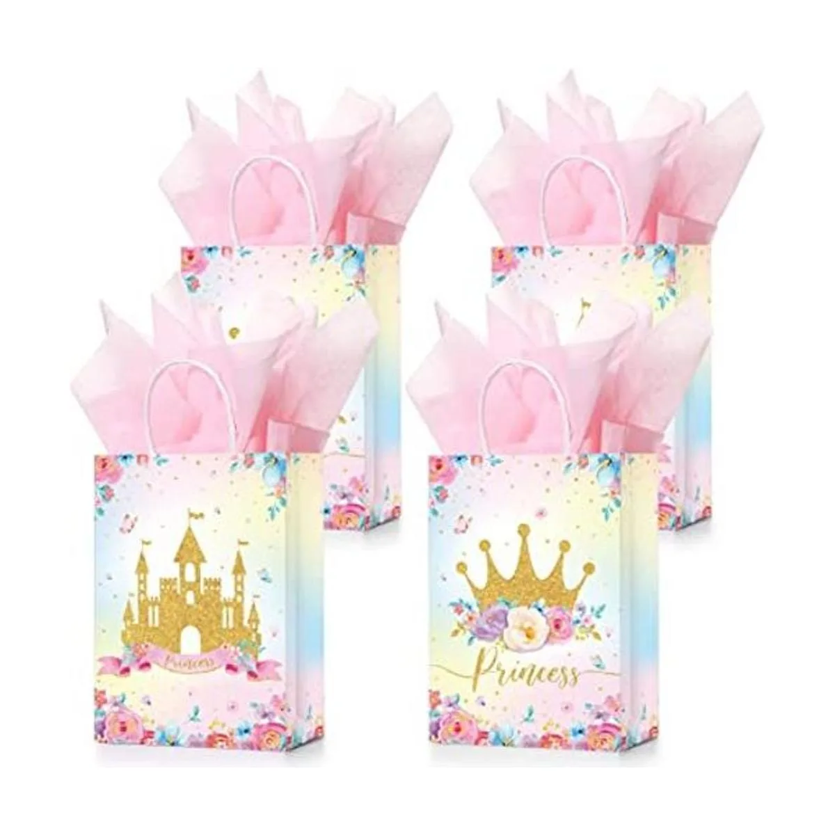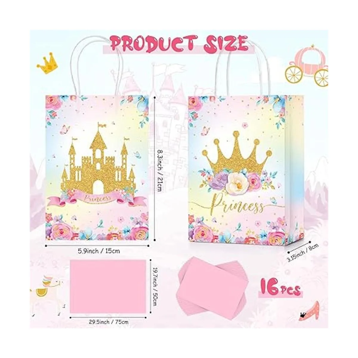Juego de 16 bolsas de regalo de fiesta con papel de seda, príncipe y princesa, bolsas de regalo de dulces para fiesta de cumpleaños, castillo, corona floral, bolsas de fiesta para niñas, niños, cumpleaños, baby shower princesa