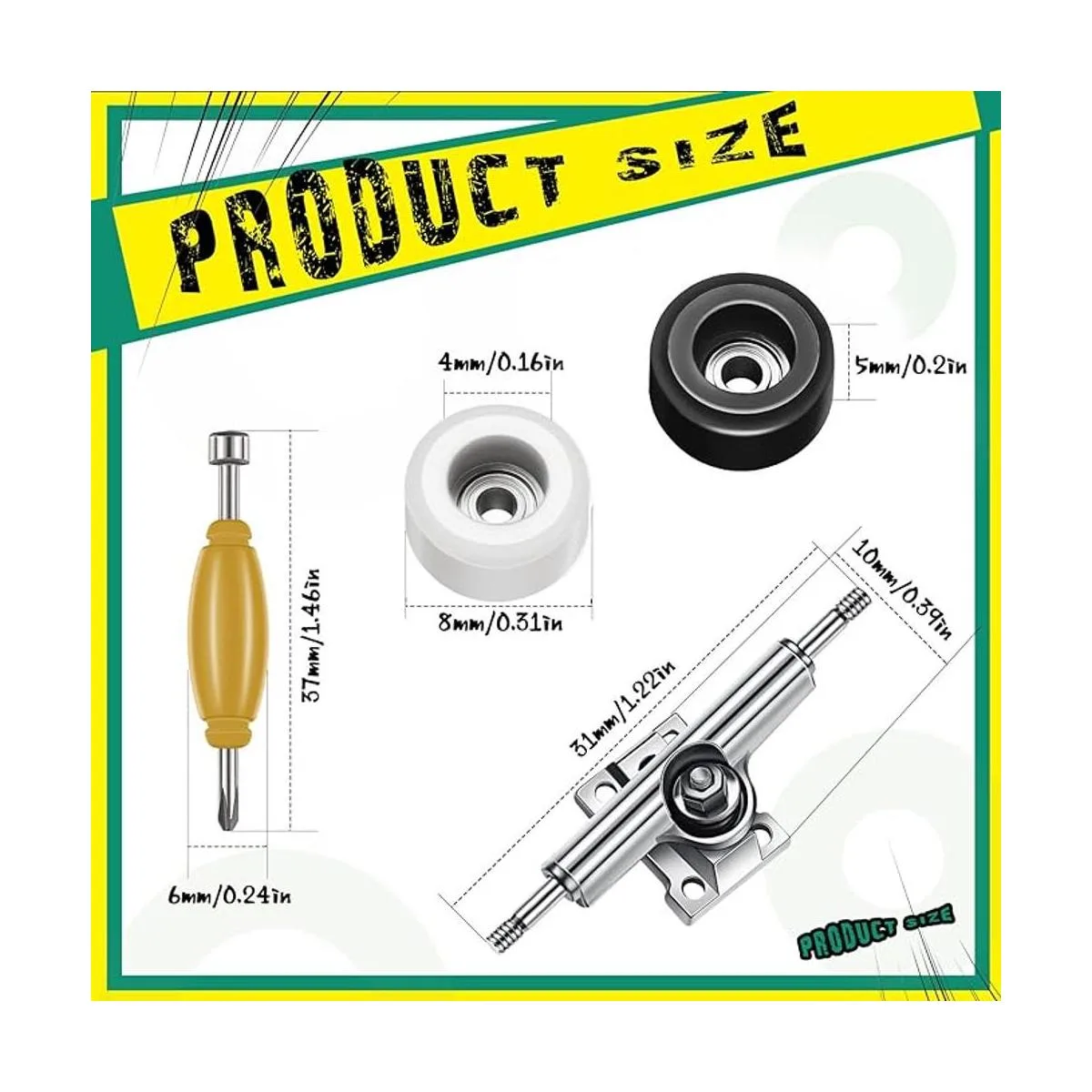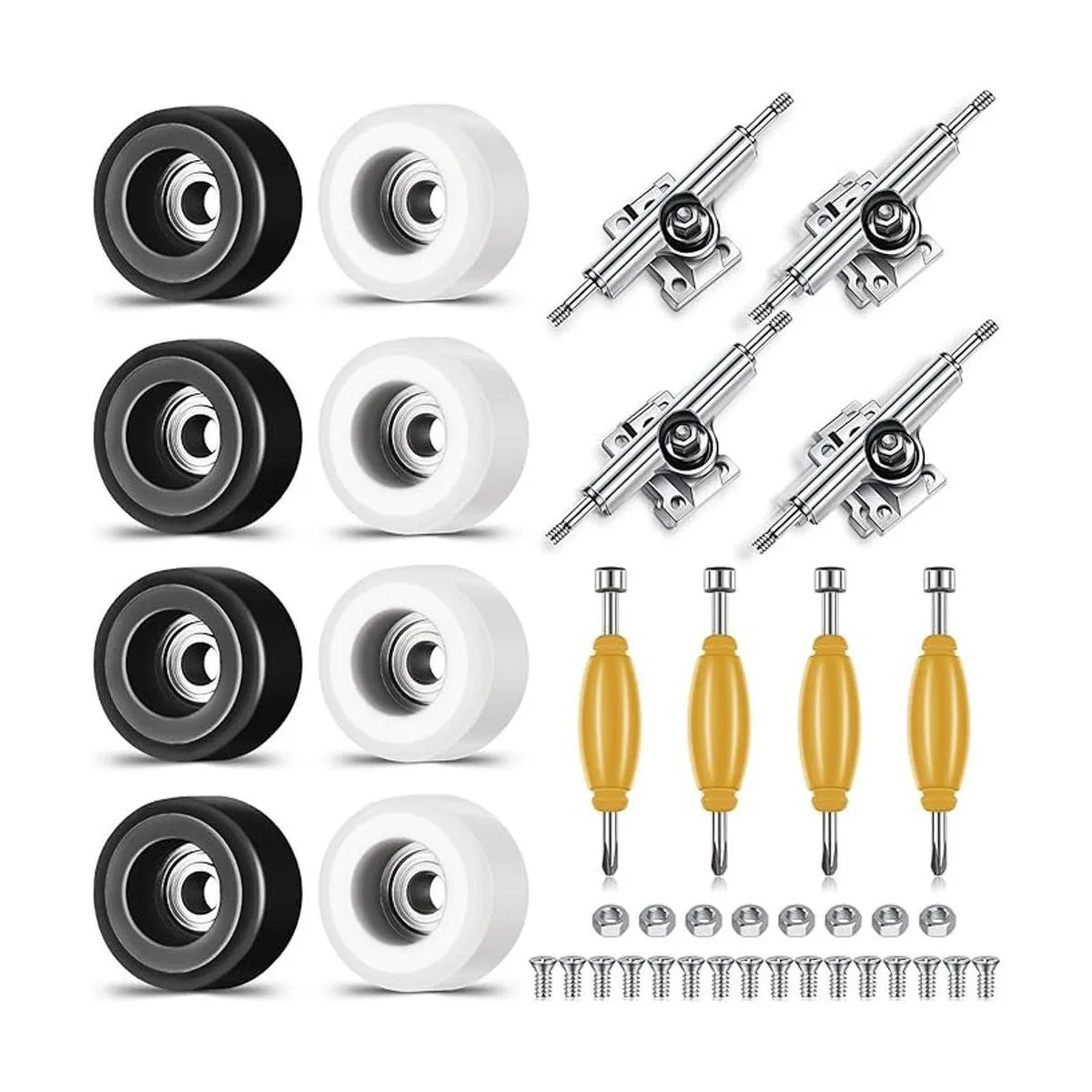 Juego de 16 herramientas estándar para diapasón CNC, ruedas de rodamiento de diapasón, tuerca, destornillador de diapasón para camiones de patineta de 1.339 in, blanco y negro
