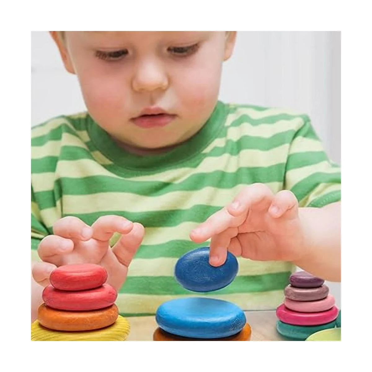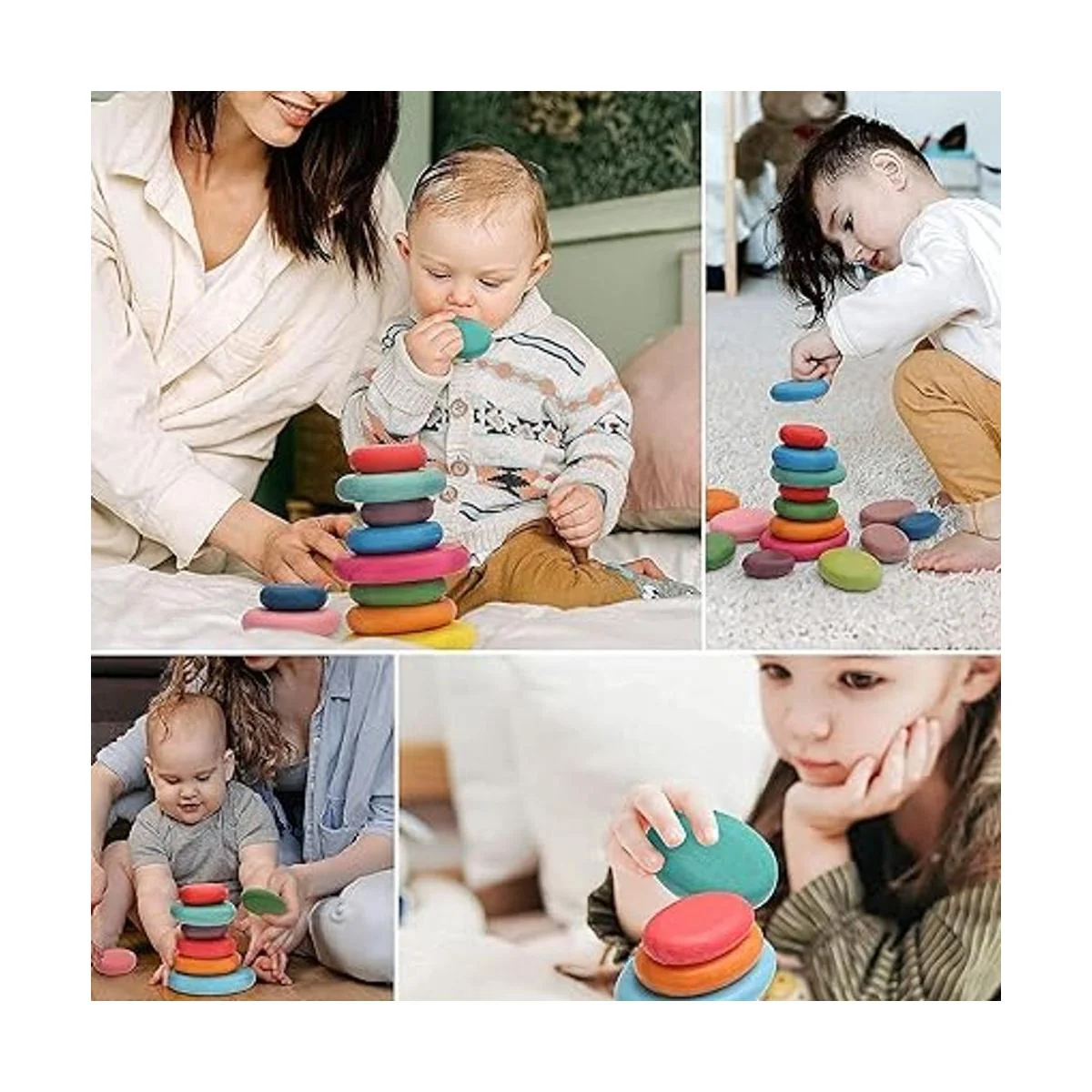 Aprendizaje y juego : nuestras piedras apilables vienen en 4 tamaños y 16 colores diferentes. Los niños a menudo se sienten atraídos por los colores brillantes. Estos bloques Montessori ayudan a estimular el desarrollo del reconocimiento temprano del color de los niños y la coordinación ojomano.