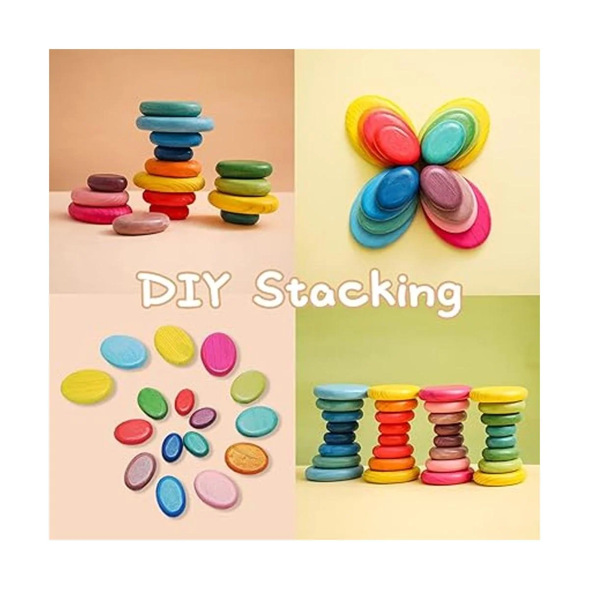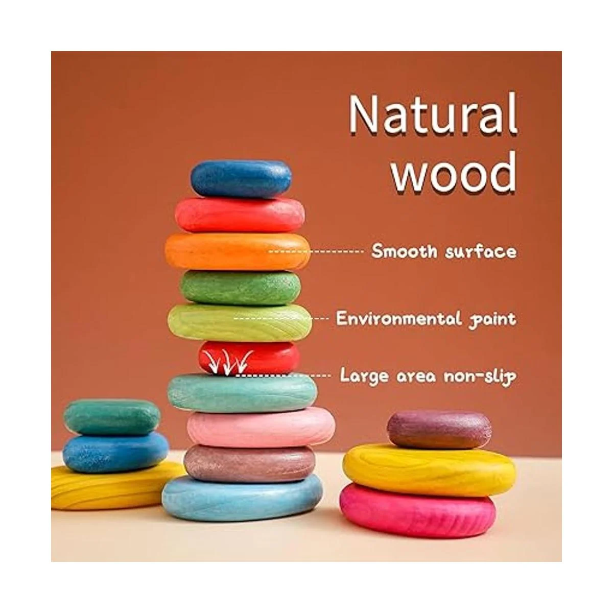 Juego de 16 piedras de madera apilables, juego de clasificación, equilibrio y apilamiento para niños pequeños, rocas Montessori apilables para niños, bloques para bebés