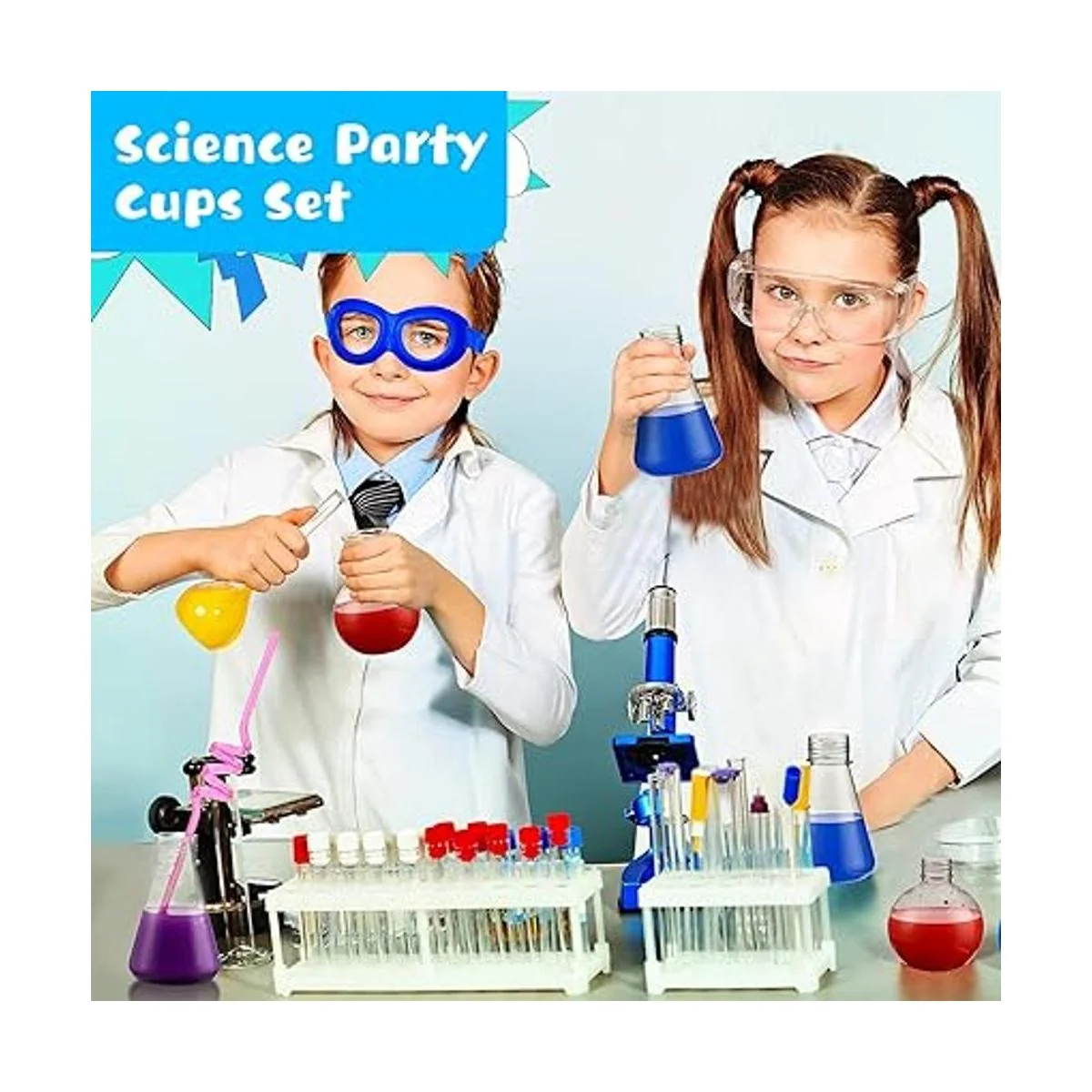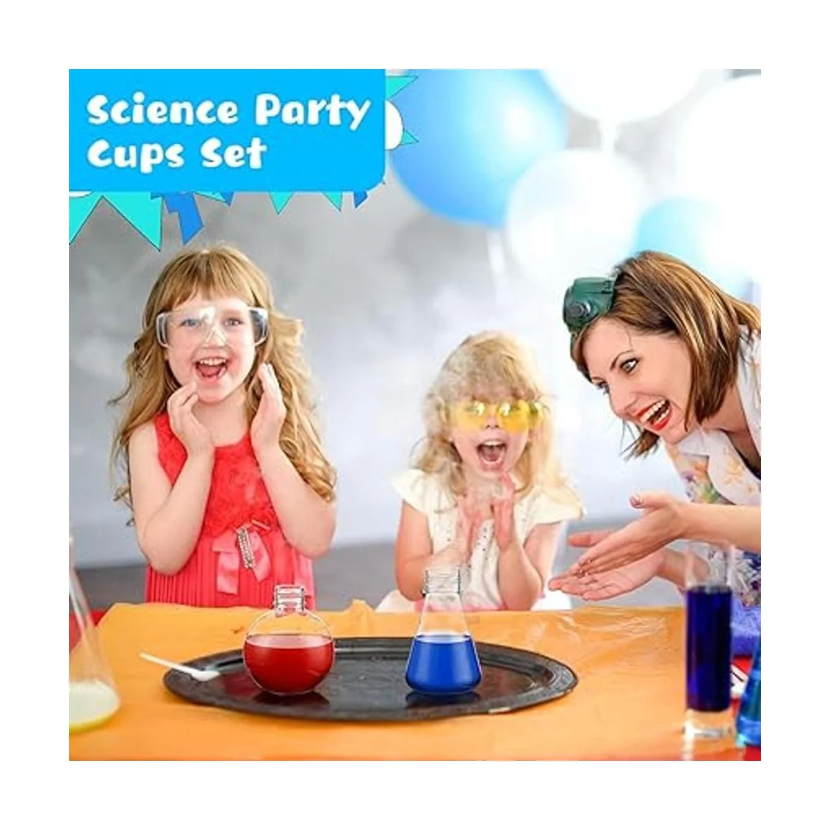 Bonitos suministros de fiesta temática científica: las tazas temáticas de fiesta de ciencia se pueden aplicar en una fiesta que para niños y niñas; las botellas son claras, por lo que puedes ver claramente qué color está la bebida en la taza, pareciendo botellas de medicina, y puedes mezclar tus propias bebidas a voluntad