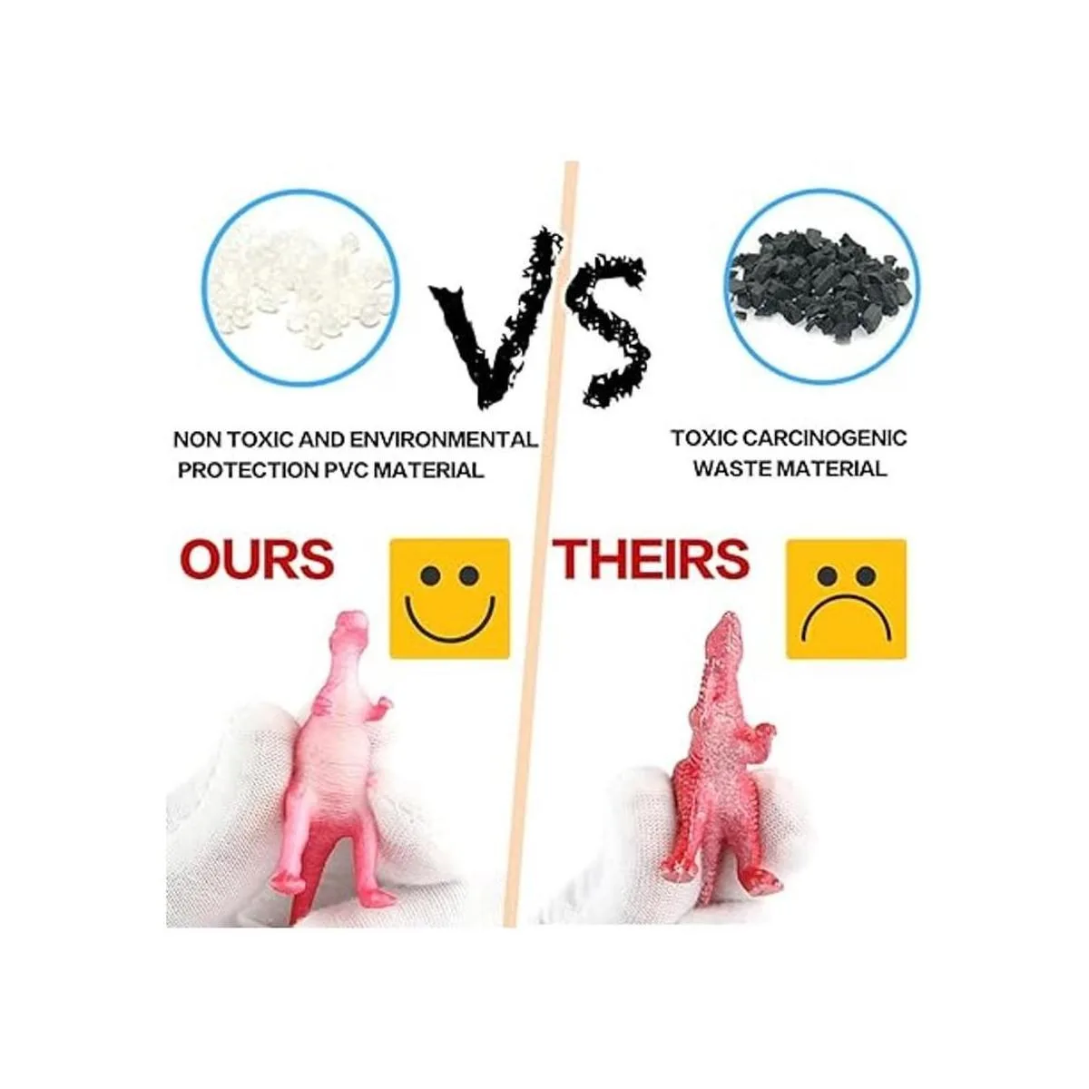 Los juguetes de dinosaurio pequeños surtidos miden 2 a 3 pulgadas, hechos de vinilo ecológico, no tóxico, de alta calidad, lo suficientemente fuerte como para soportar horas de juego resistente.