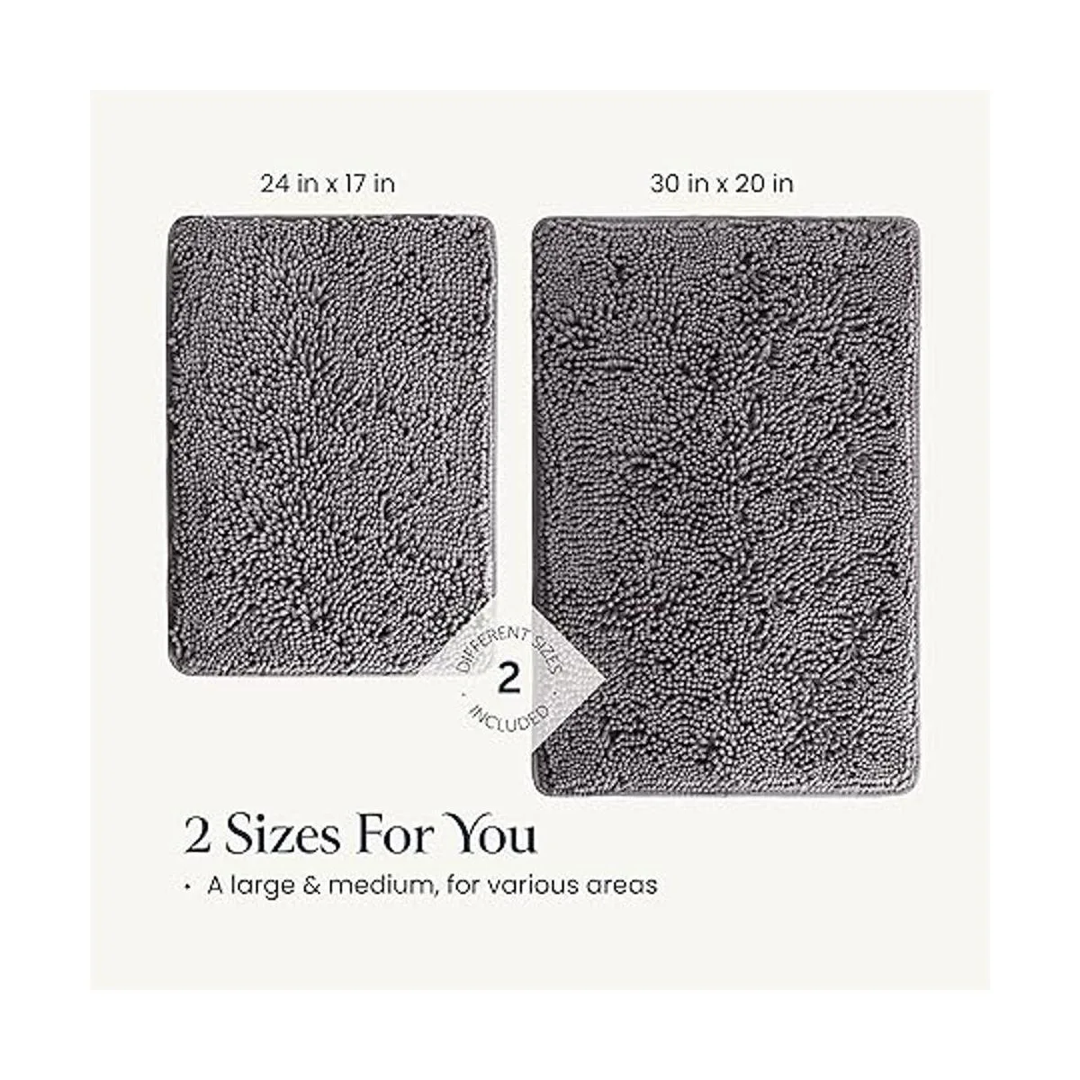 Diseño elegante Las alfombrillas llegarán en un juego de 2, una grande y otra mediana, para que puedas combinarlas con tus zonas de baño y tocador. Añade un aspecto hogareño y renovado a tu baño o mejora la entrada, el dormitorio o la cocina.