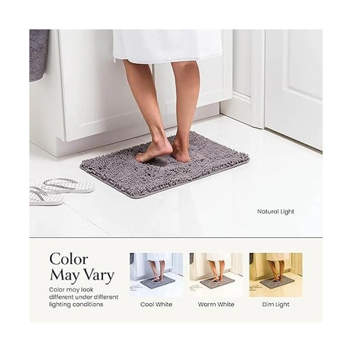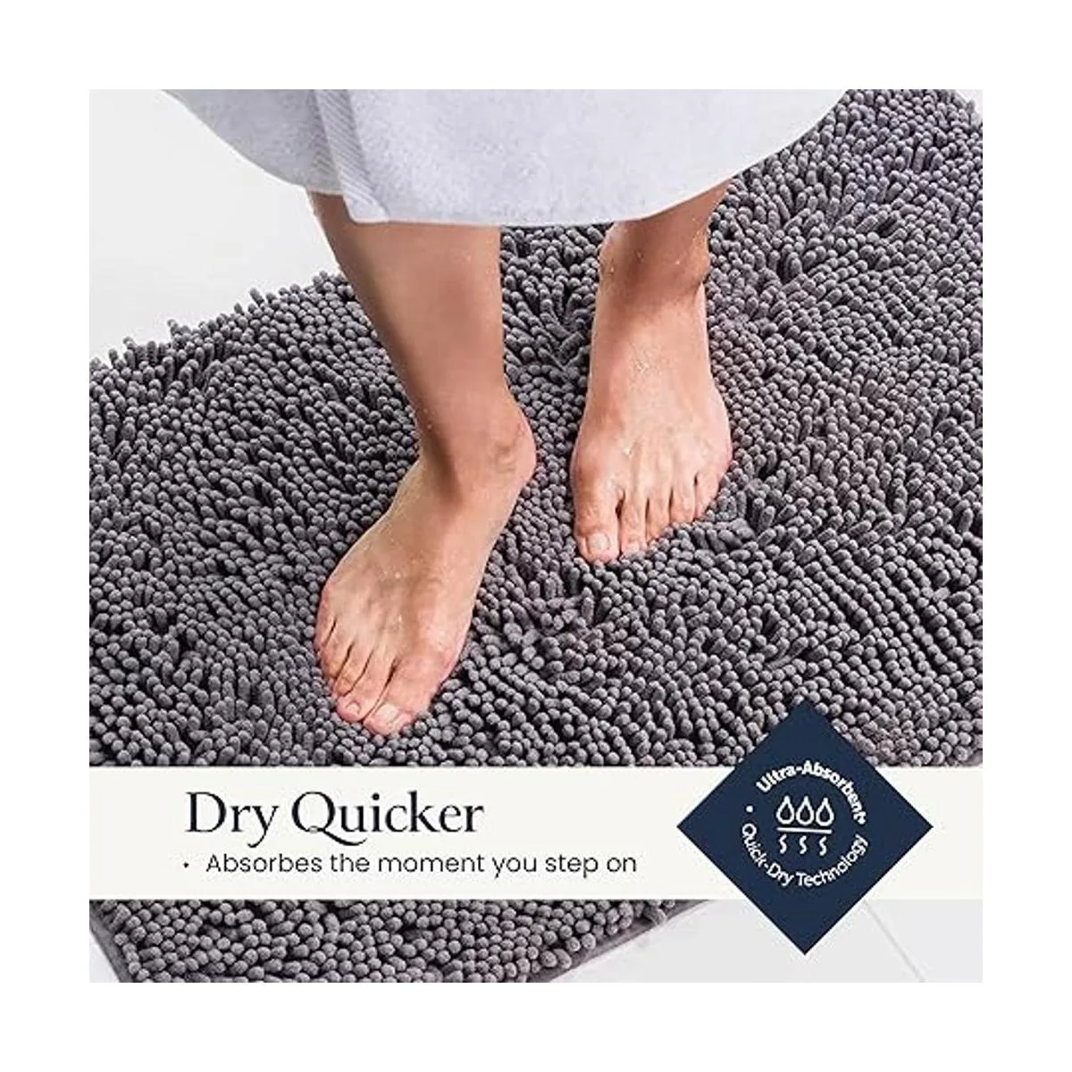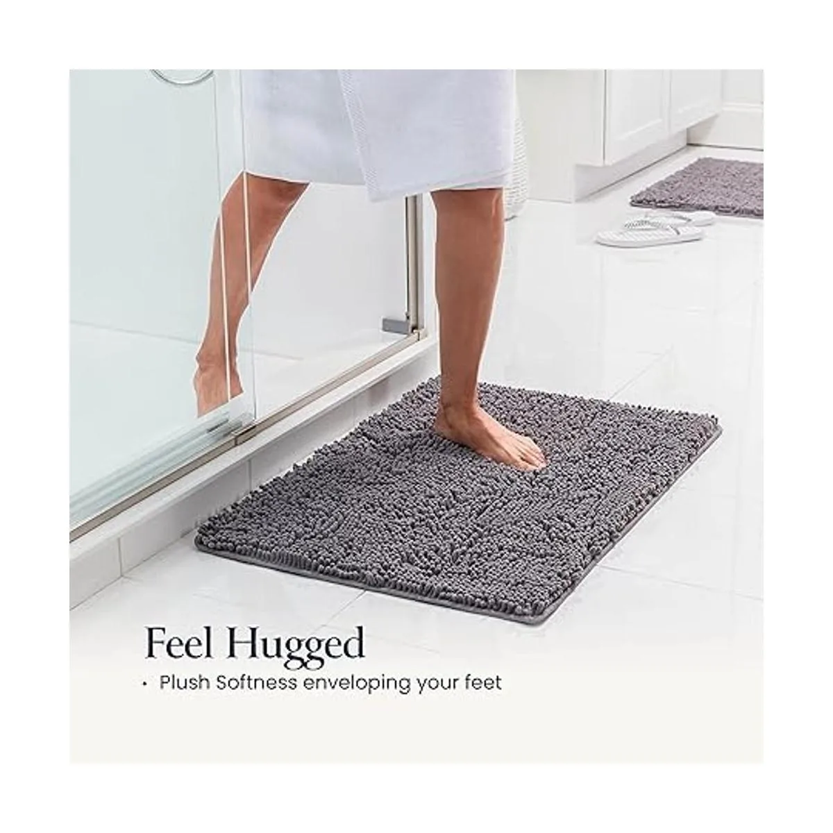 Sensación de felpa: sumérgete en la suavidad de ensueño que envuelve tus pies después del baño. Esta alfombra está hecha de chenilla de pelo alto para brindar la sensación más lujosa que te hará sentir lujosamente mimado y te otorgará una cálida bienvenida en lugar del piso áspero y frío.