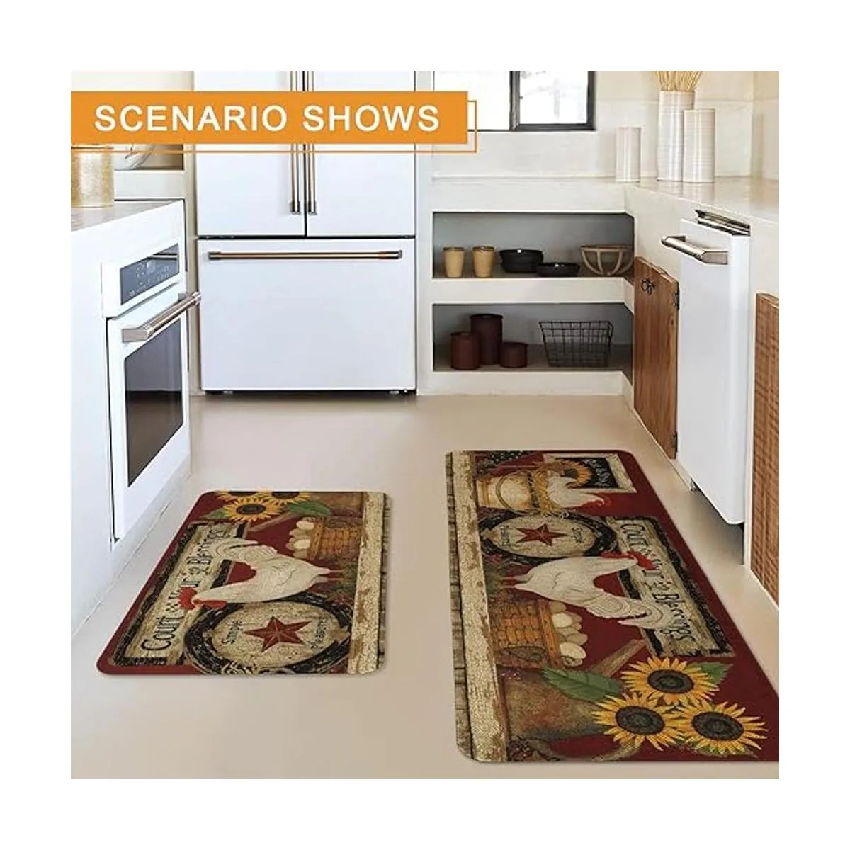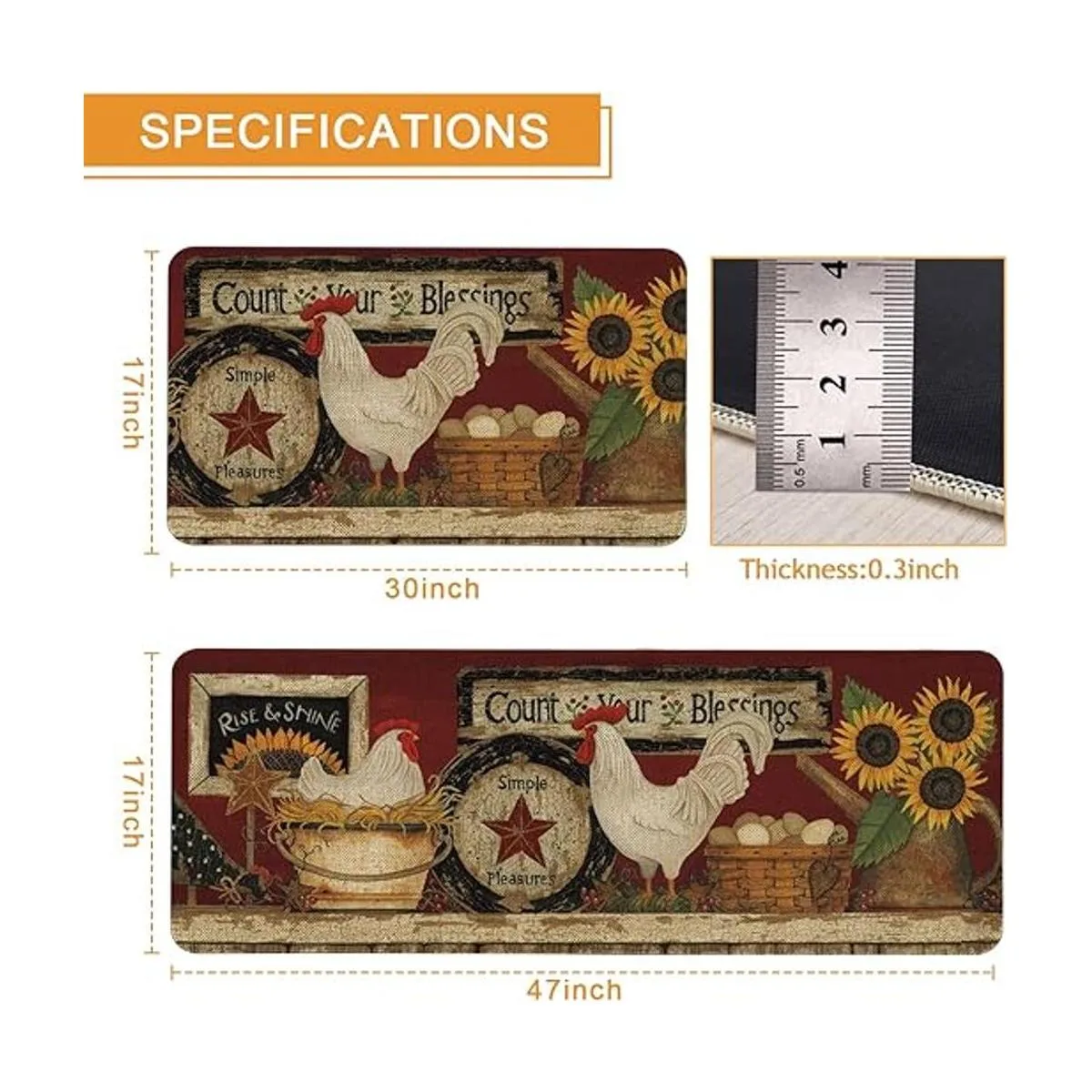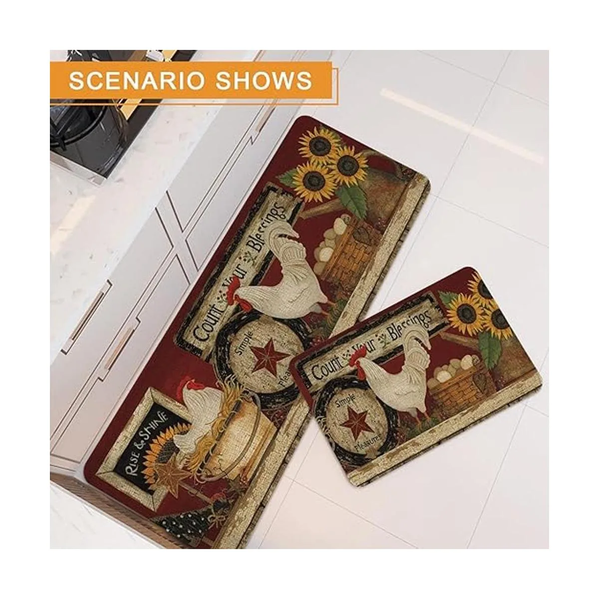 Tamaño perfecto: el tamaño de este juego de alfombrillas de cocina de granja es de 17 x 29 pulgadas y 17 x 47 pulgadas, cuenta con 0.3 pulgadas delgadas. Un largo y otro corto, lo que los hace del tamaño adecuado para la cocina. La nueva tecnología de impresión aplicada soporta el desgaste y mantiene el color vivo durante mucho tiempo.