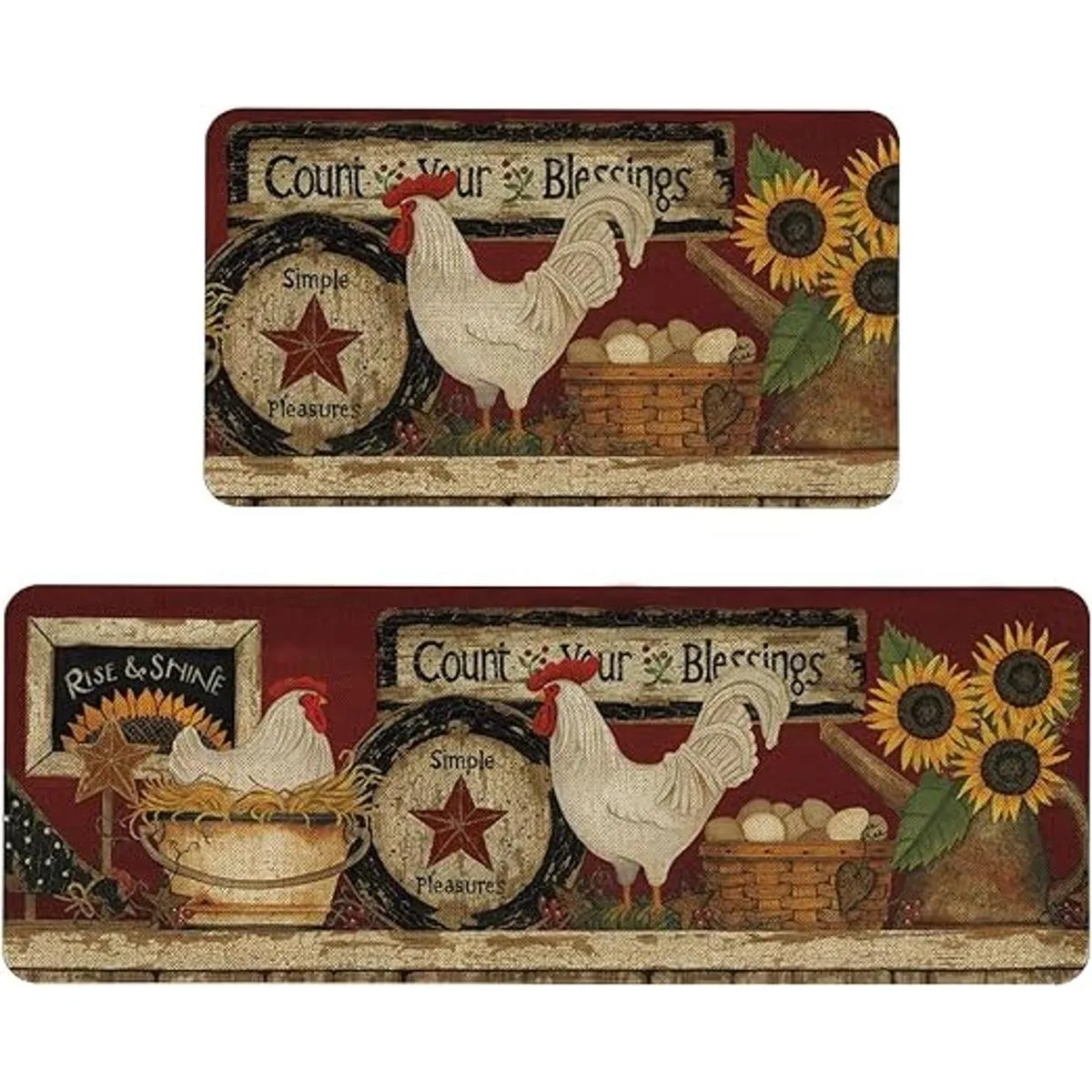 Juego de 2 alfombras y tapetes de cocina de granja, juego de 2 alfombrillas de cocina con gallo de granja, juegos de cocina de temporada, lavables y antideslizantes, para decoración del hogar, cocina, 17 x 29 y 17 x 47 pulgadas