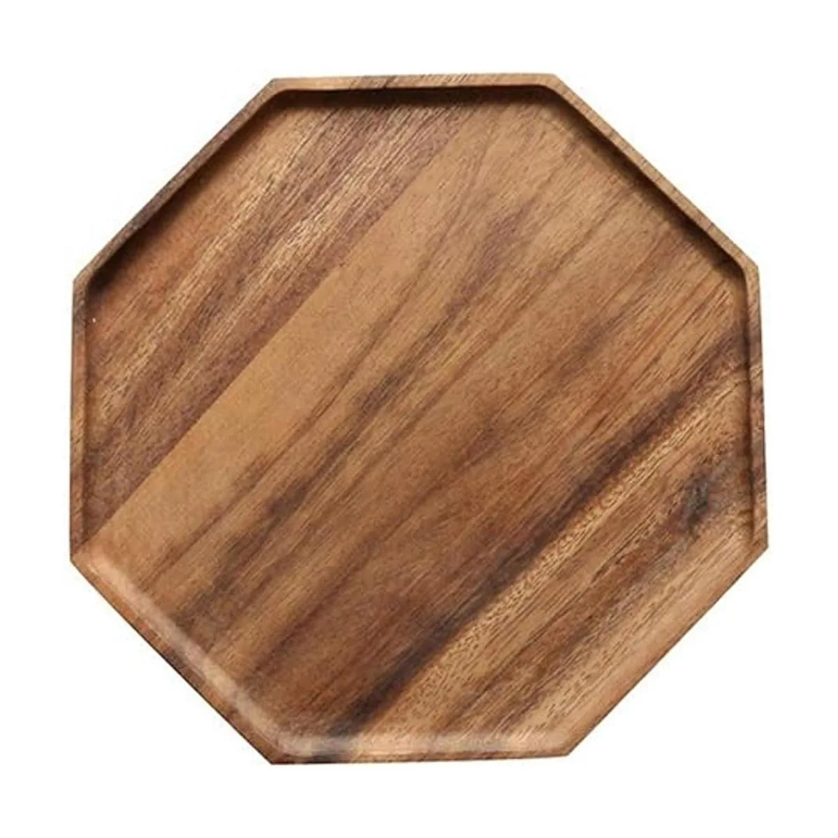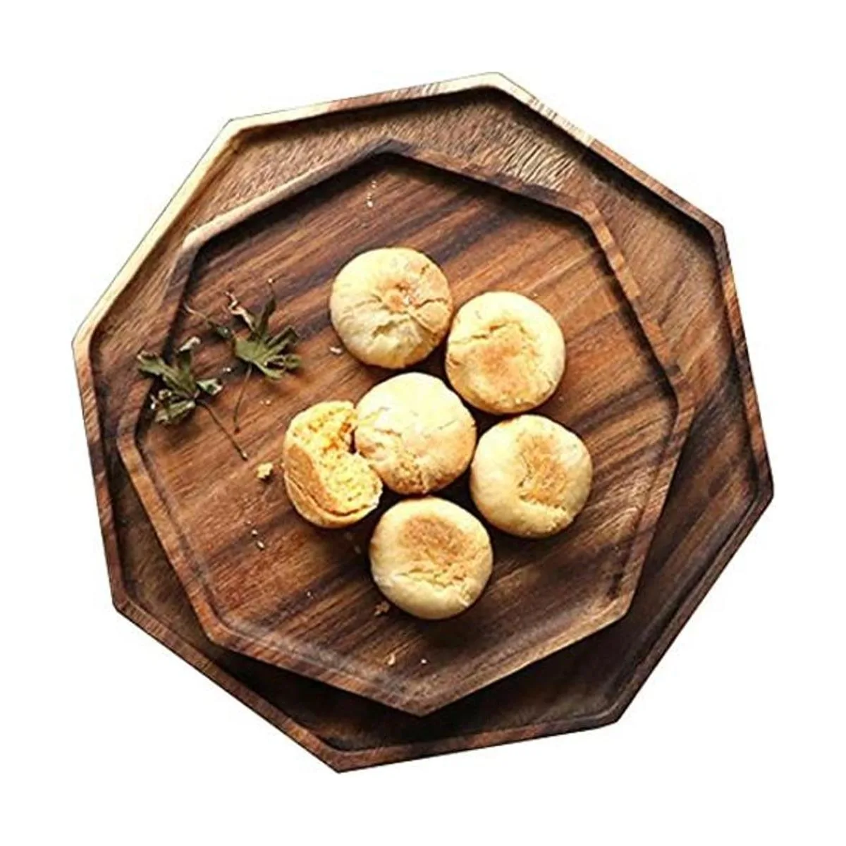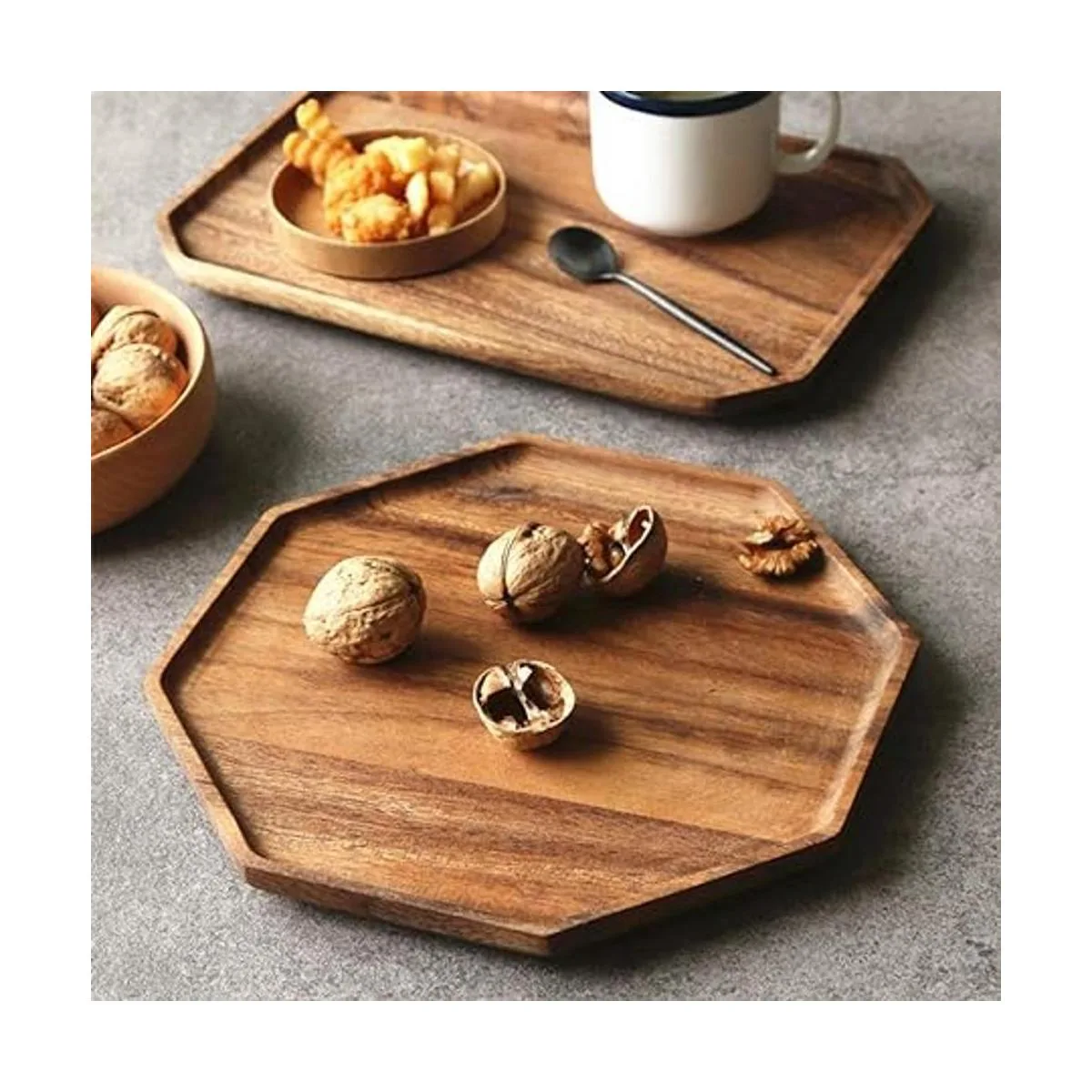Juego de 2 bandejas cuadradas octágono de madera de acacia para servir platos de pan para ensalada de frutas, platos de verduras, platos cargadores de platos de charcutería