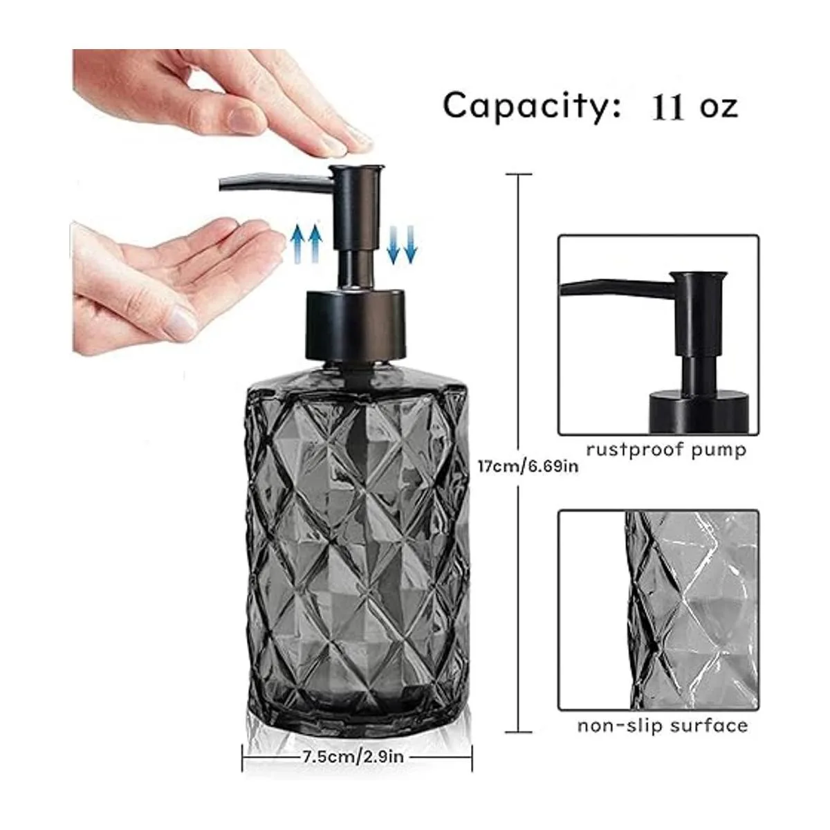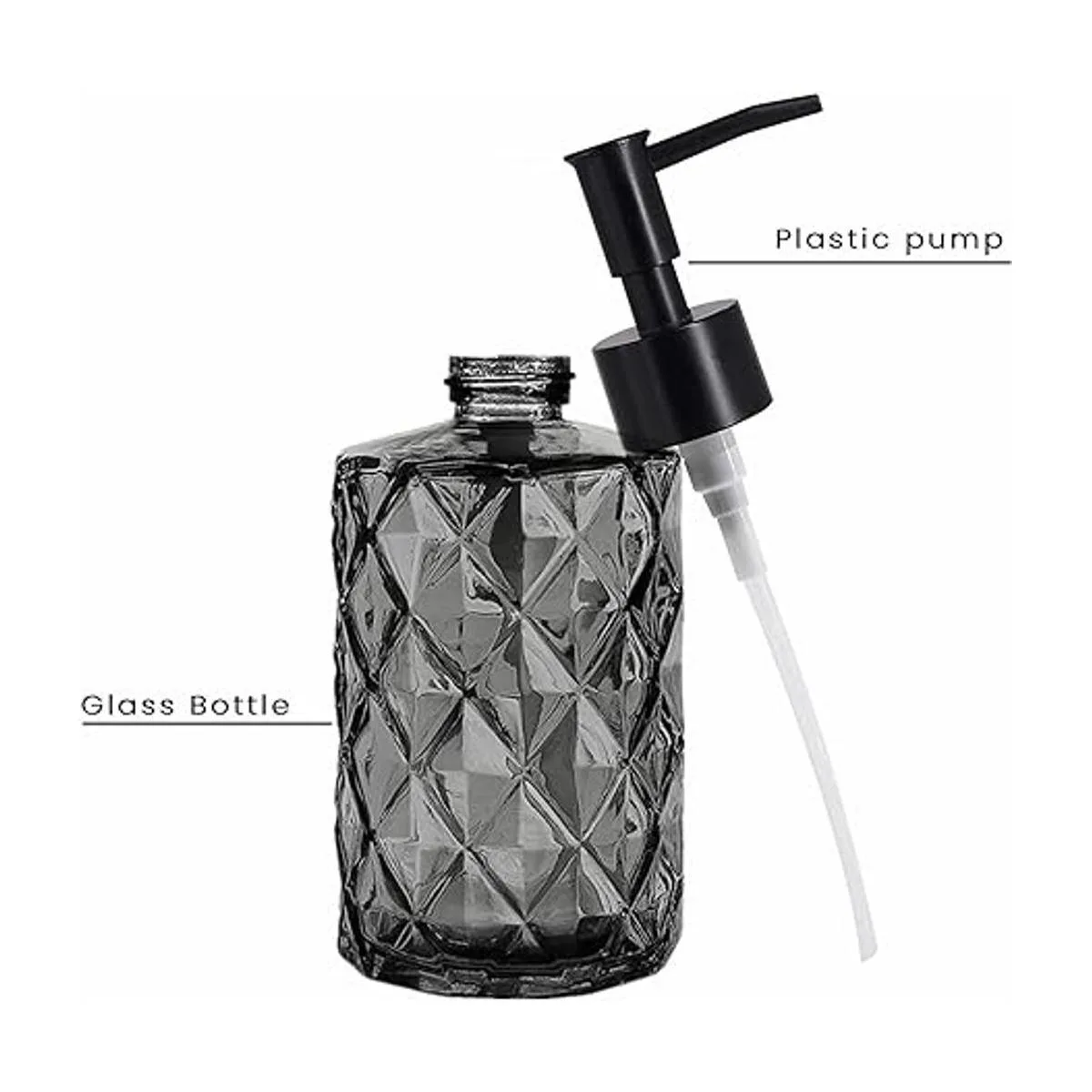 Juego de dispensador de loción y jabón: capacidad de 11 onzas, los dispensadores de botellas de vidrio son adecuados para todo tipo de lociones a temperatura ambiente, ideal para encimeras de baño y fregaderos de cocina, y el cabezal de la bomba puede presionar la cantidad correcta de líquido sin fugas.