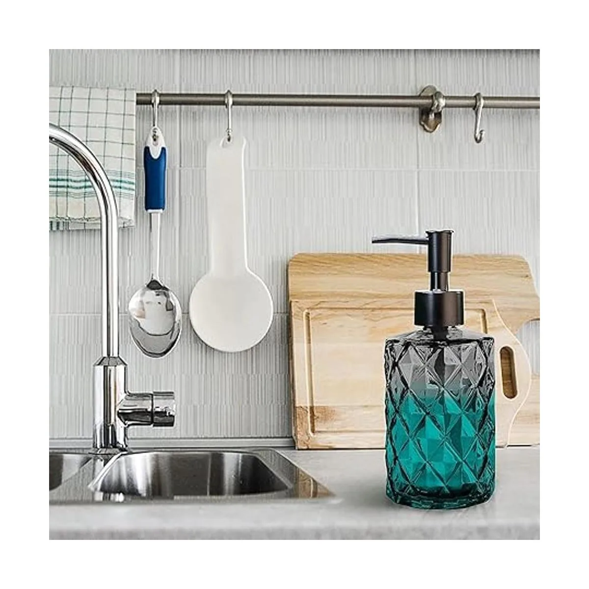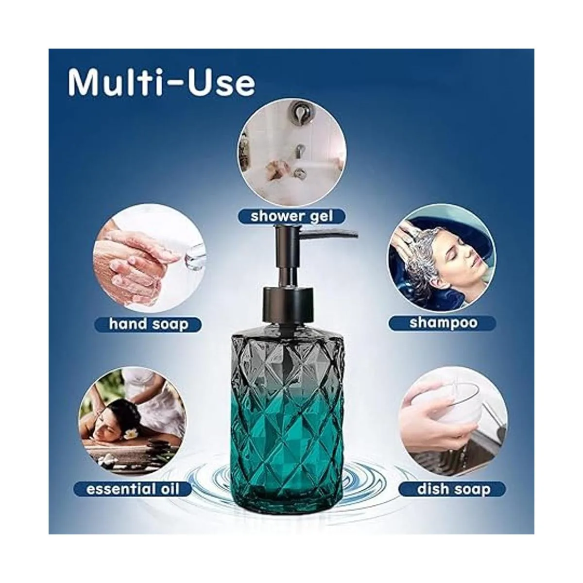 Multiusos: se puede colocar en encimeras de baño, fregaderos de cocina, lavaderos, casas de campo o al aire libre como la playa, etc. Adecuado para líquidos diarios como jabón de manos, jabón de platos, champú, gel de ducha, loción, aceites esenciales, etc.
