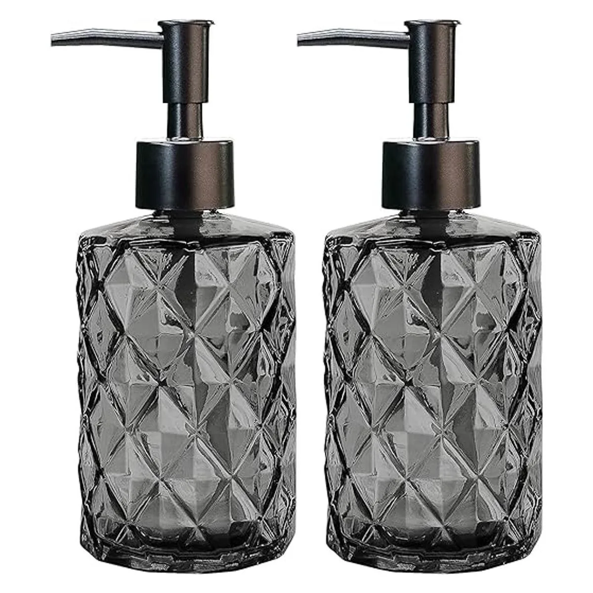 Juego de 2 dispensadores de jabón de vidrio para baño, botellas de jabón de vidrio de 11 onzas con bomba de plástico, juego de dispensador de jabón de platos de cocina, dispensador de bomba de mano para jabón líquido de manos, loción, aceite esencial negro