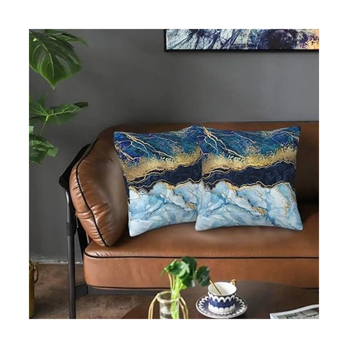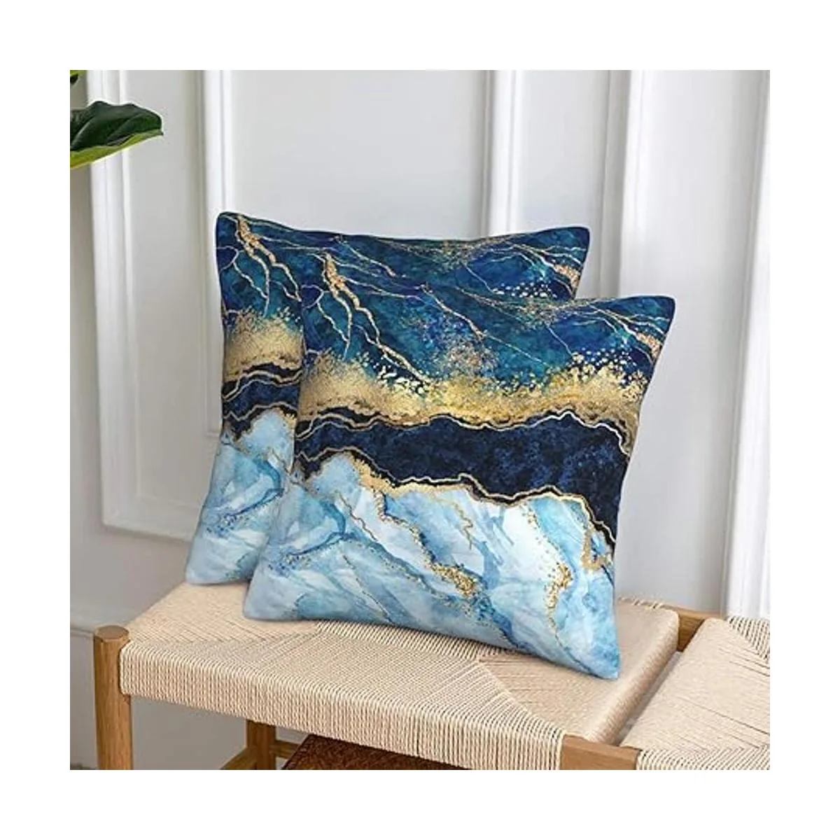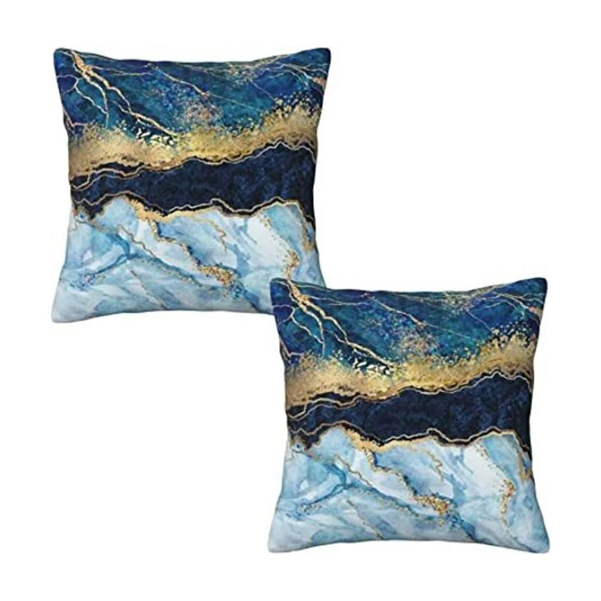 Fundas de almohada de mármol azul marino dorado de 18 x 18 pulgadas, totalmente impresas en ambos lados, tela de poliéster, suave y cómoda. El paquete incluye 2 fundas de almohada, relleno de almohada no incluido.