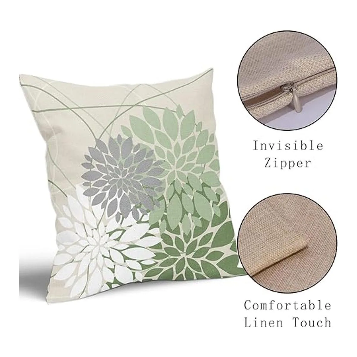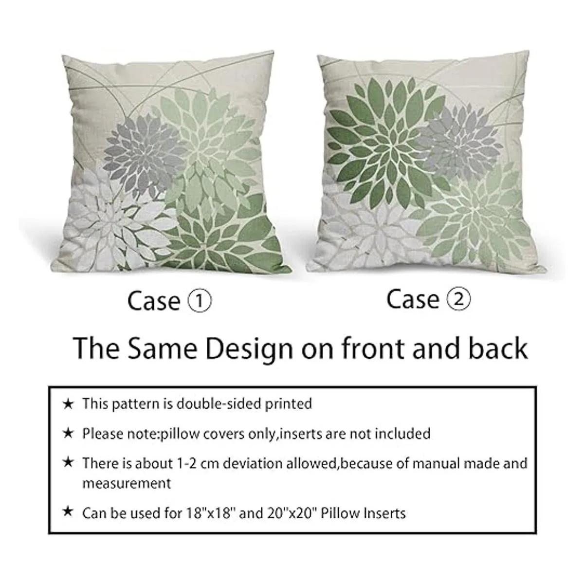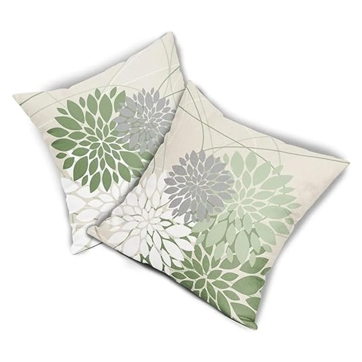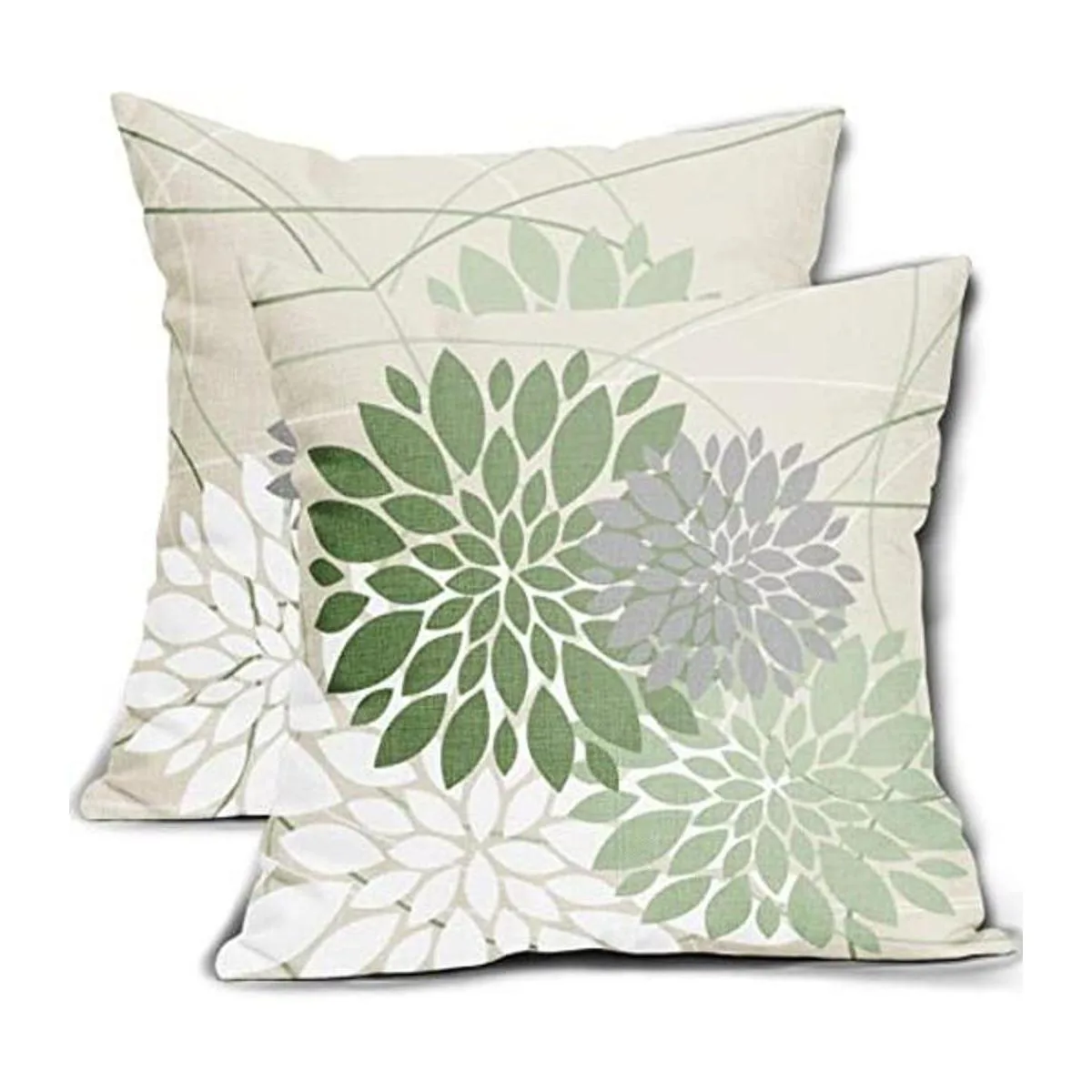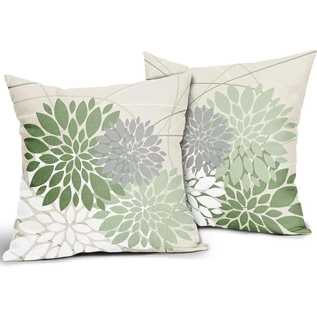Juego de 2 fundas de almohada de dalia verde salvia de 18 x 18 pulgadas, diseño geométrico floral, elegante y moderno, decoración de casa de campo para decoración al aire libre para el hogar, dormitorio, sala de estar, funda de cojín cuadrada de lino, juego de 2