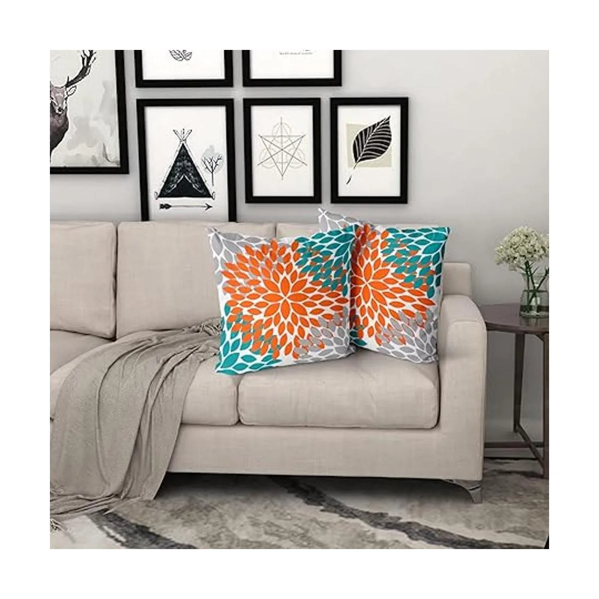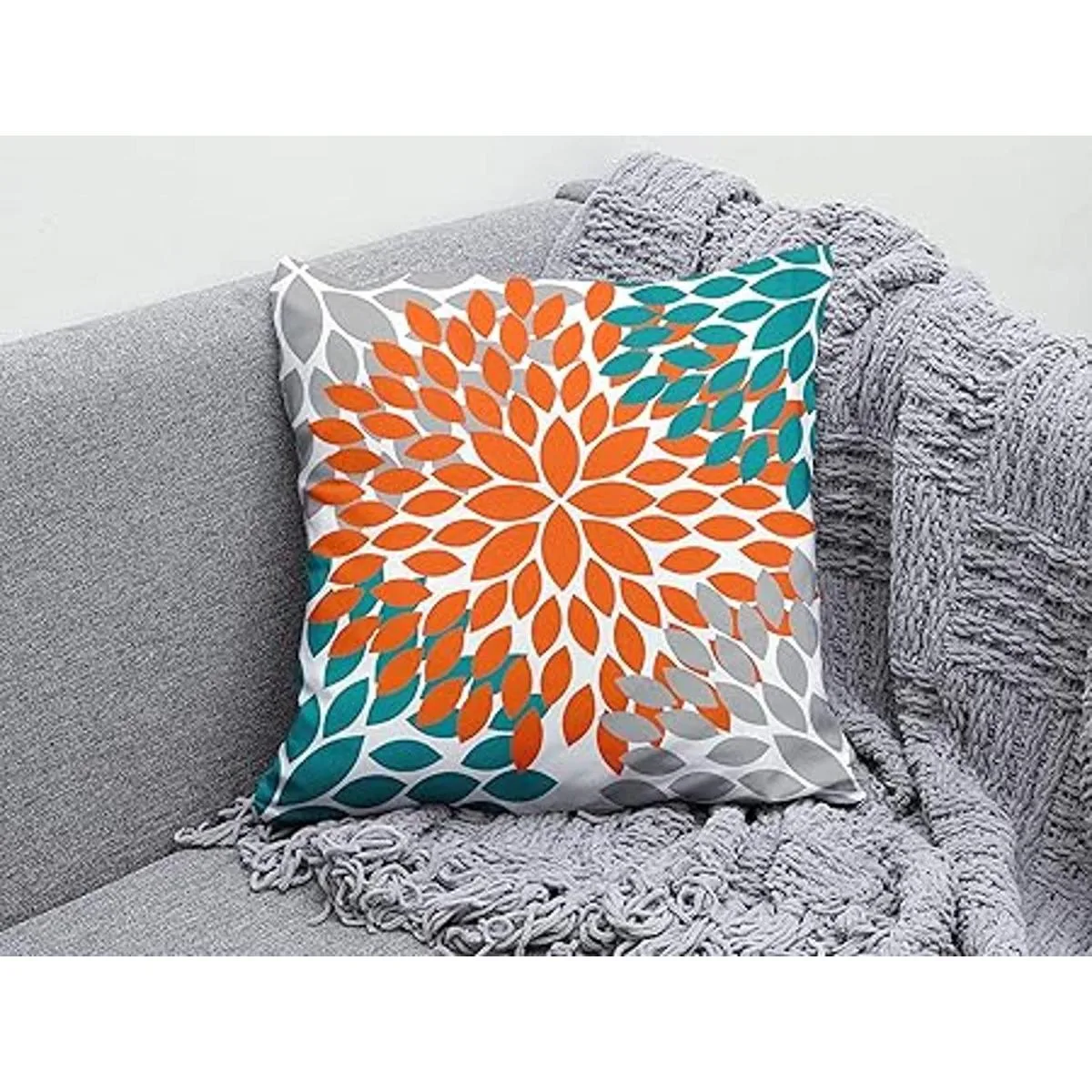Tamaño : 18 x 18 pulgadas, 17.7 x 17.7 in. Nota: solo contiene 2 fundas de almohada de color naranja y gris azulado, rellenos no incluidos