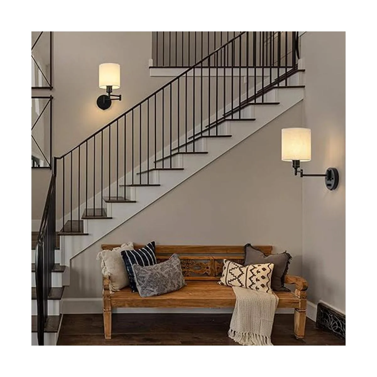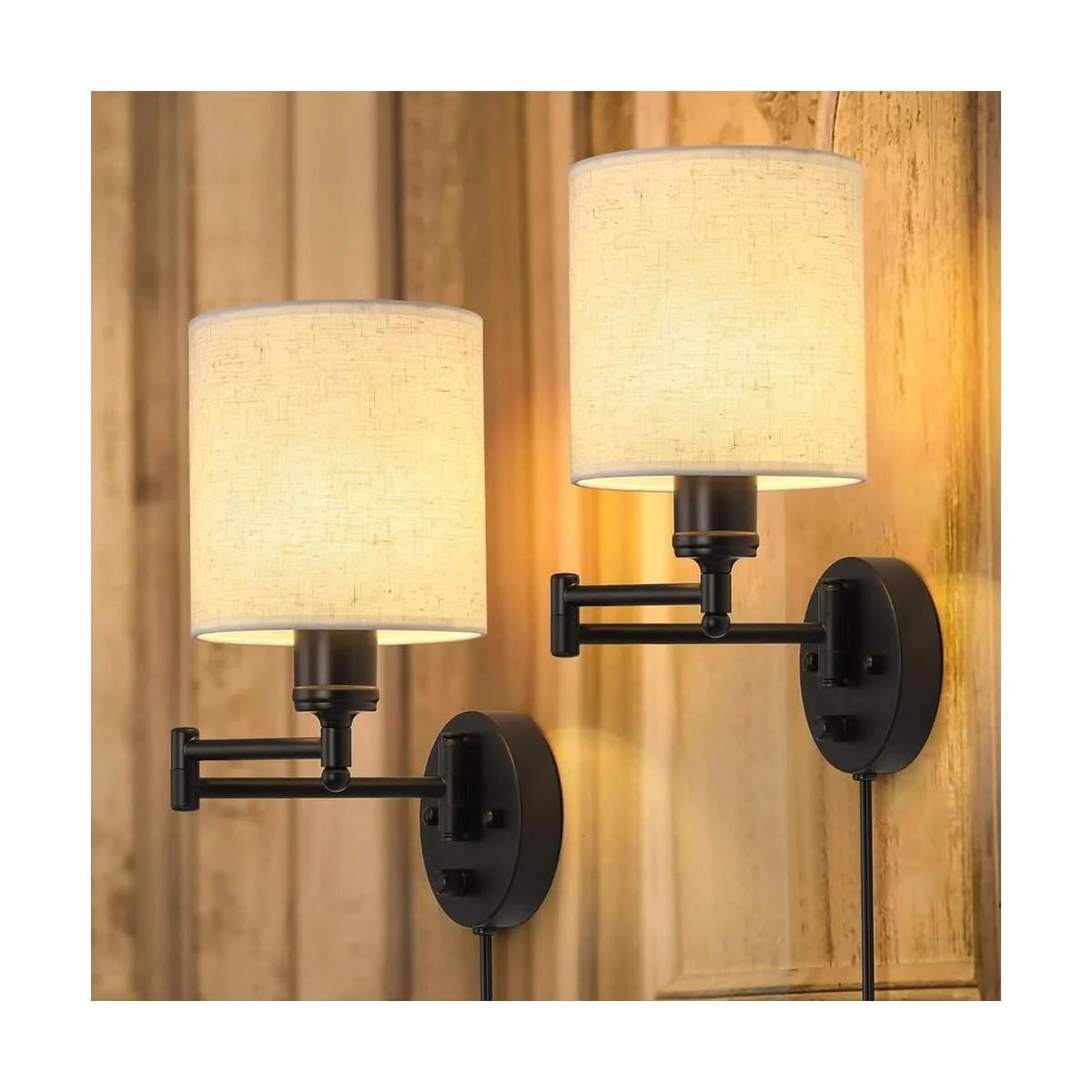 Juego de 2 lámparas de pared con brazo oscilante, modernas lámparas de pared para dormitorio con pantalla de lino para lectura, pasillo, sala de estar