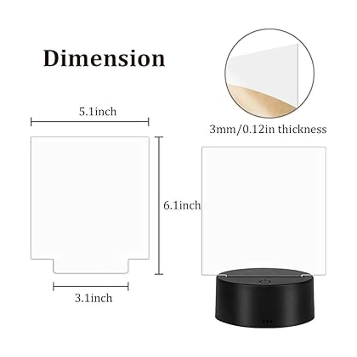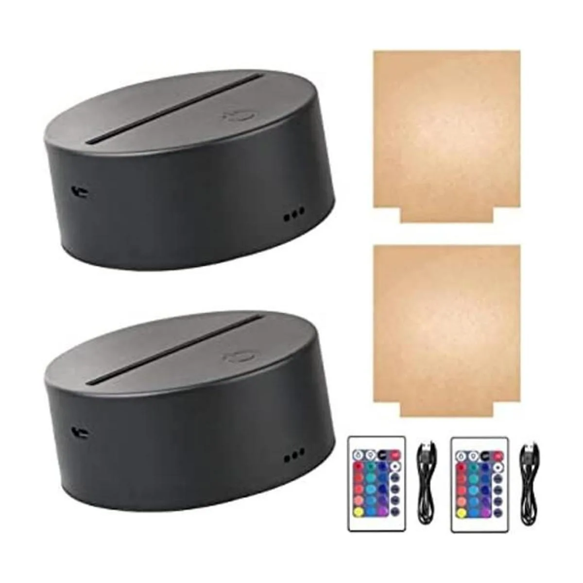 Juego de 2 luces LED de noche 3D con lámina acrílica cuadrada, base de tamaño grande que incluye control remoto cable USB, 16 colores decoración Maison luces decorativas para dormitorio habitación infantil negro