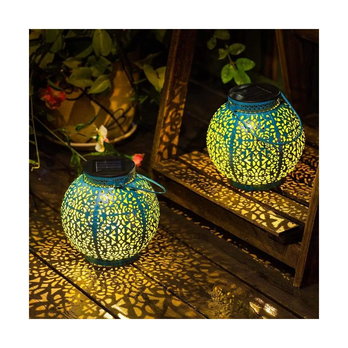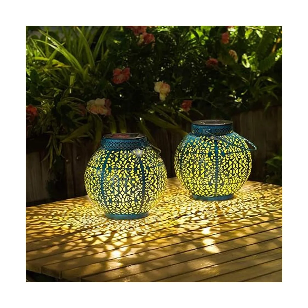 Juego de 2 luces solares TAKE ME para exteriores, jardín, luces colgantes de metal retro para patio, exterior o mesa azul