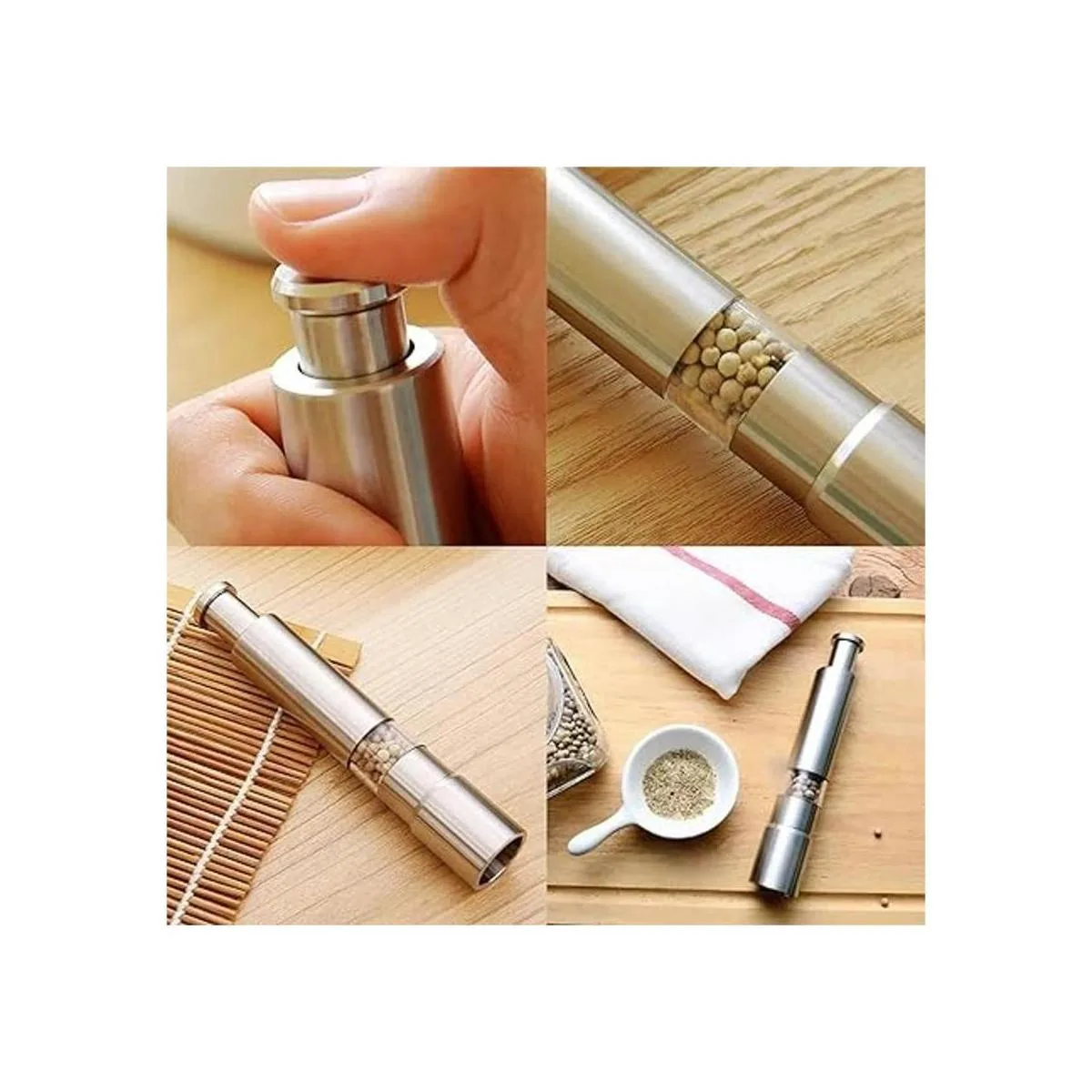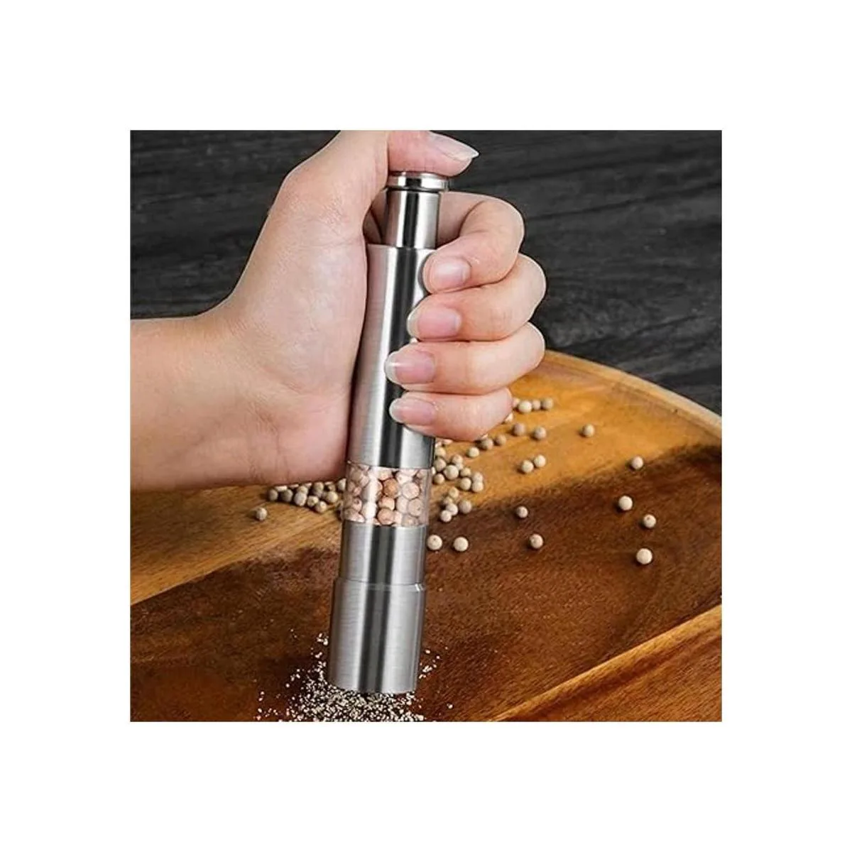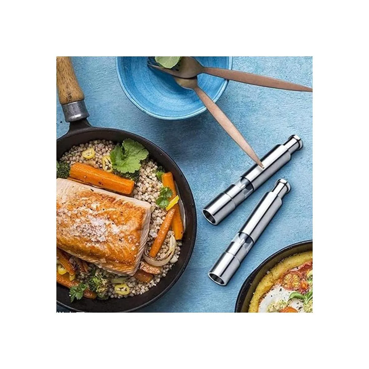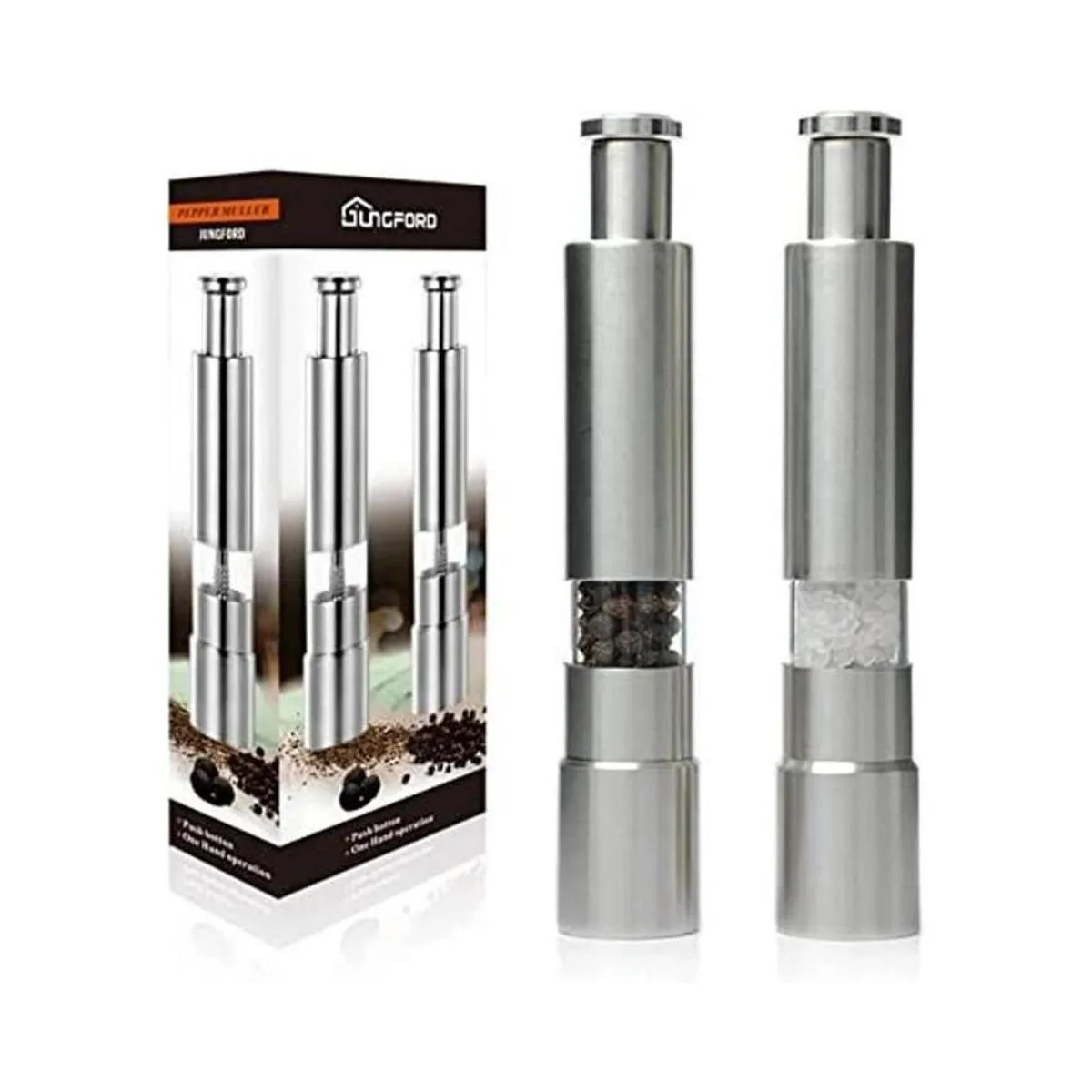 Juego de 2 molinillos de sal y pimienta de acero inoxidable de primera calidad para granos de pimienta, sal marina del Himalaya y especias, botón de empuje para 1 operación manual