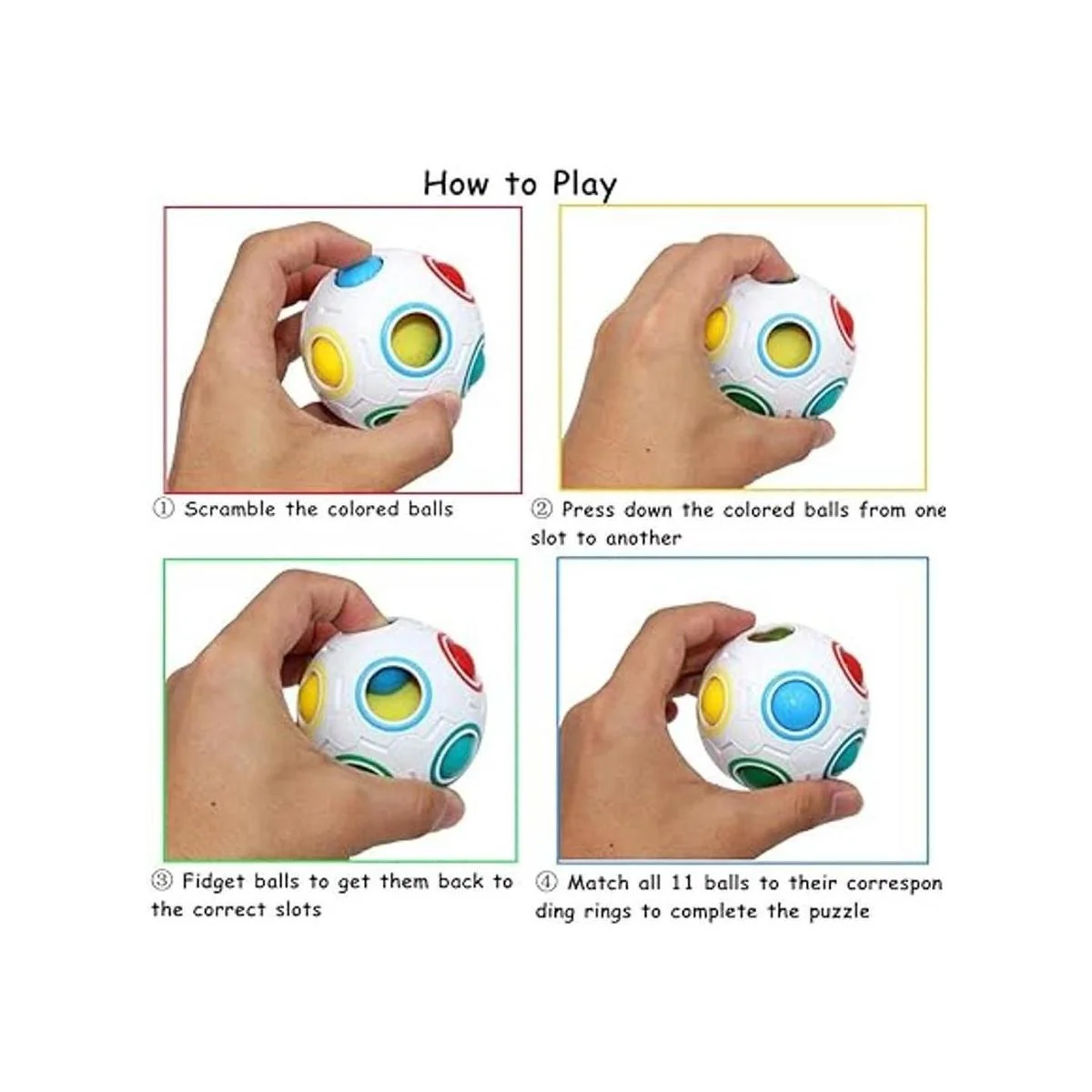 Divertida bola antiestrés: la bola de rompecabezas arcoíris es un cubo redondo en forma de fútbol con 12 agujeros y 11 bolas de colores en el interior, estas bolas se pueden pasar de un agujero a otro. Tu objetivo es revolver las bolas de colores, luego averiguar cómo volver a ponerlas todas en sus ranuras de colores a juego en todos los agujeros