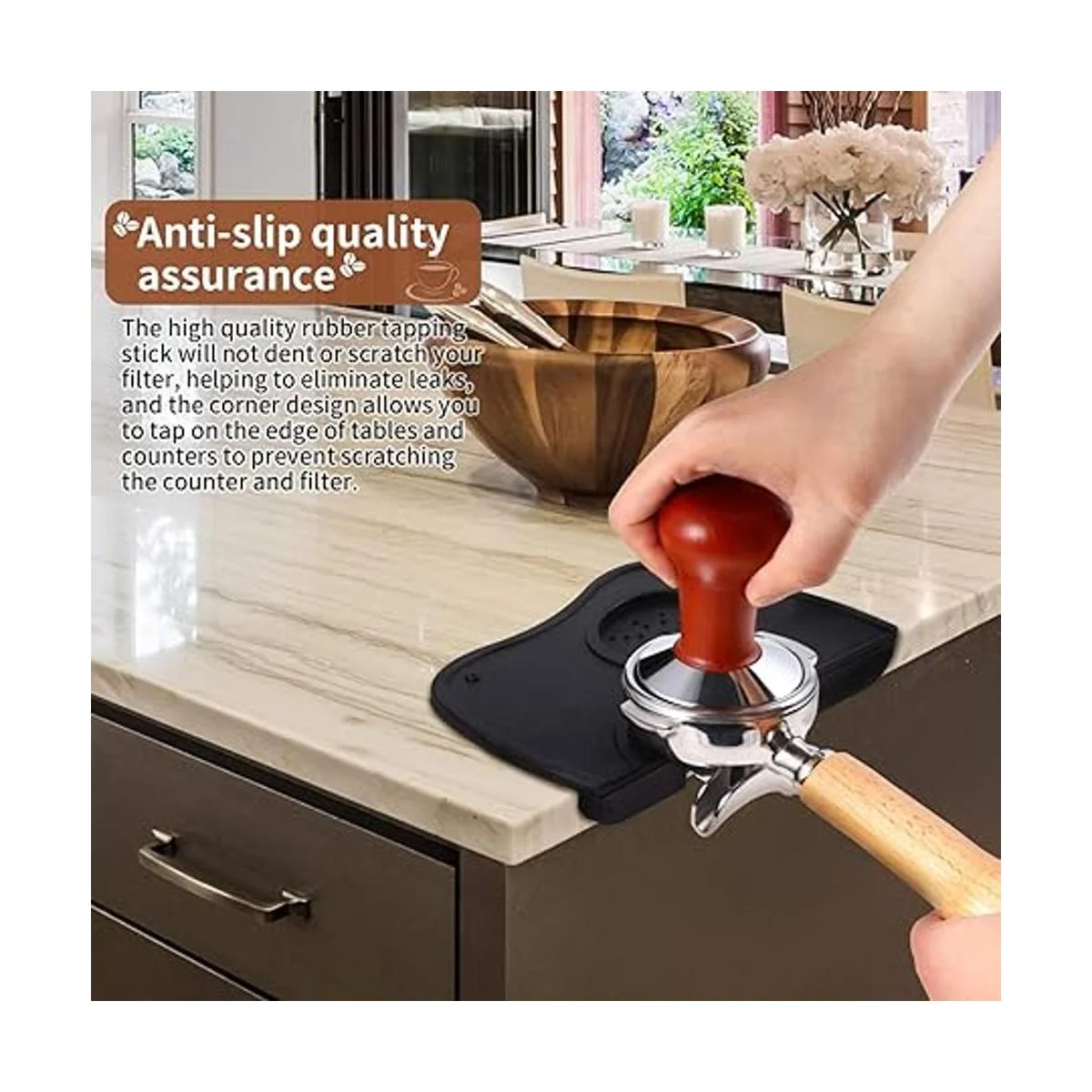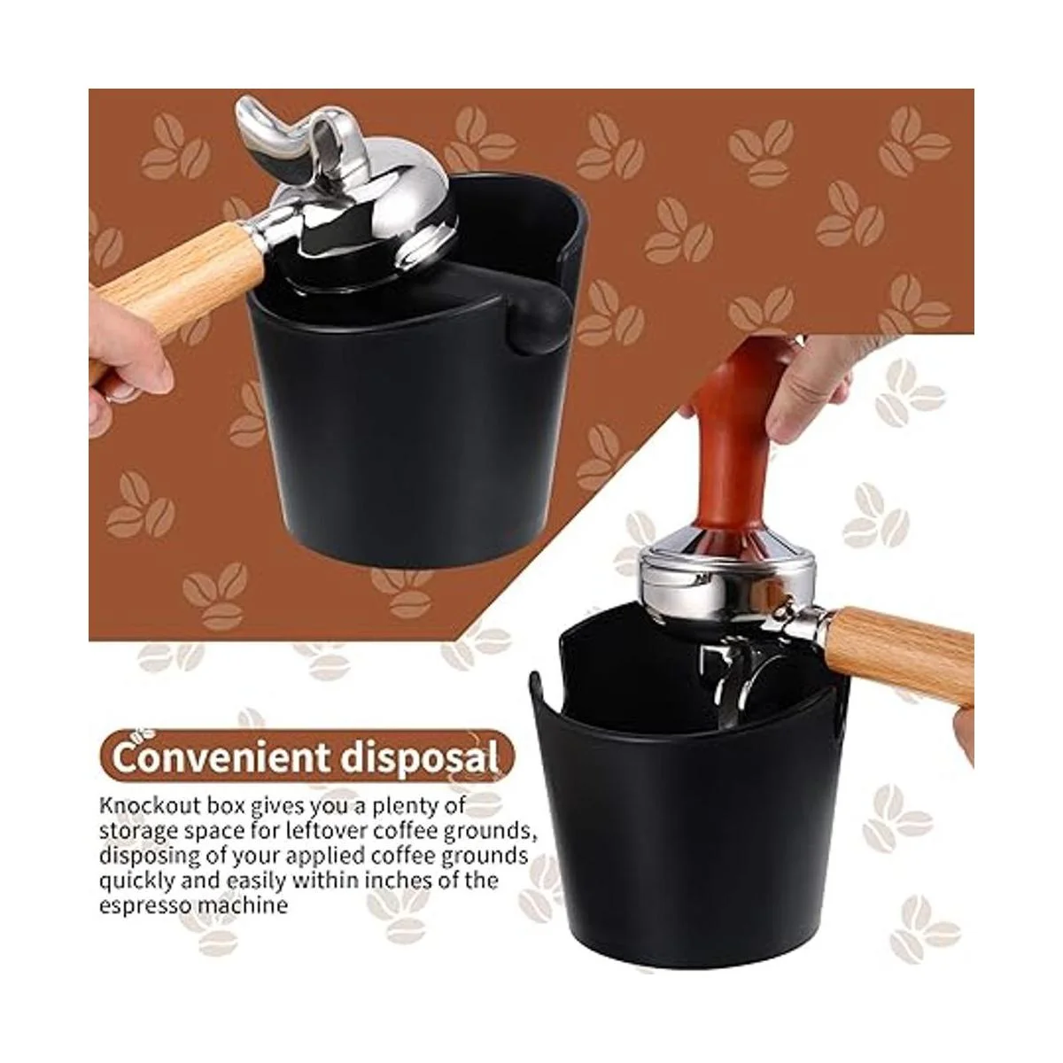 Juego de 2 piezas de caja de café Espresso Knock Box Espresso Tamper Mat Durable estilo barista Knock Box con barra extraíble y base antideslizante, silicona segura para alimentos para Barista Bar Shop Worktop