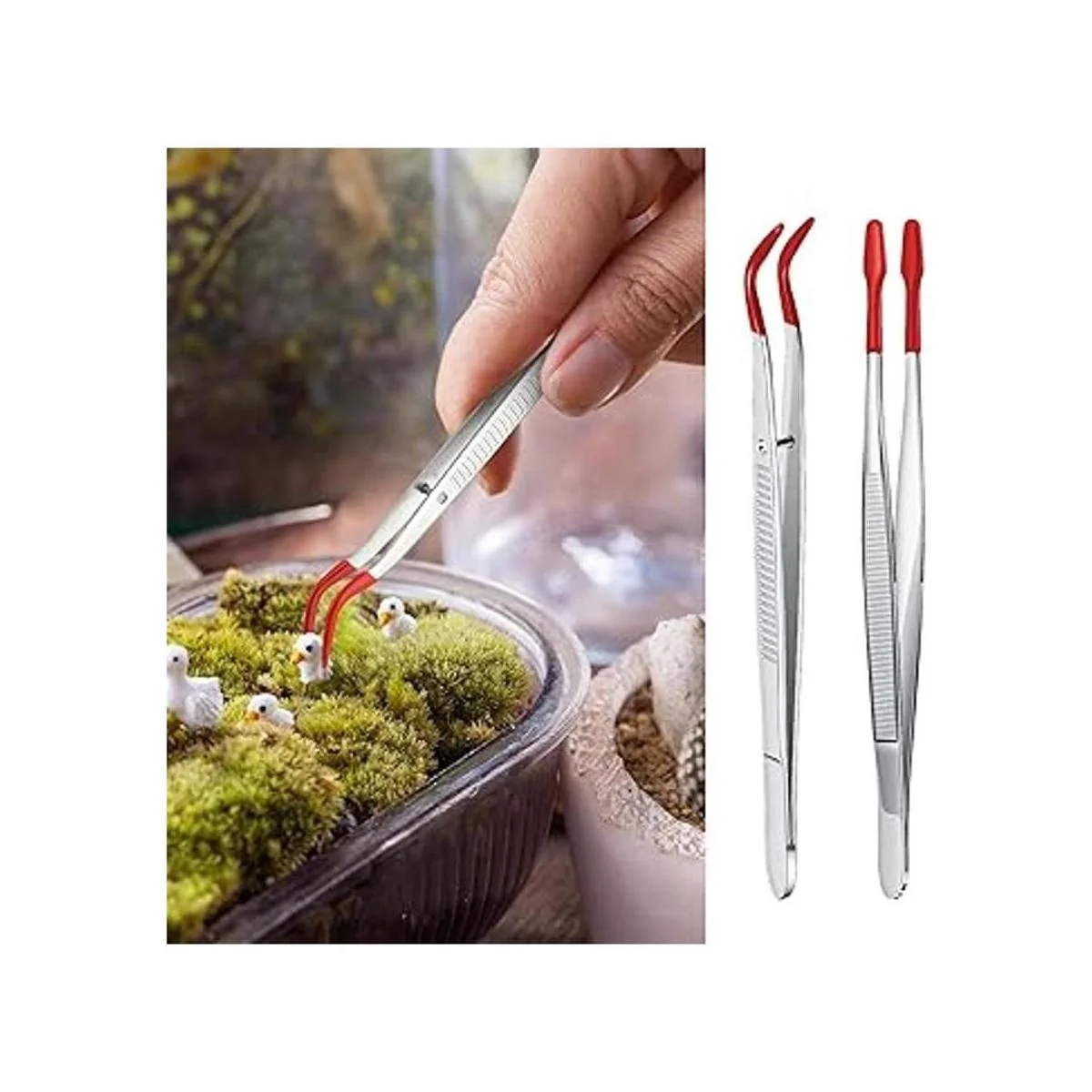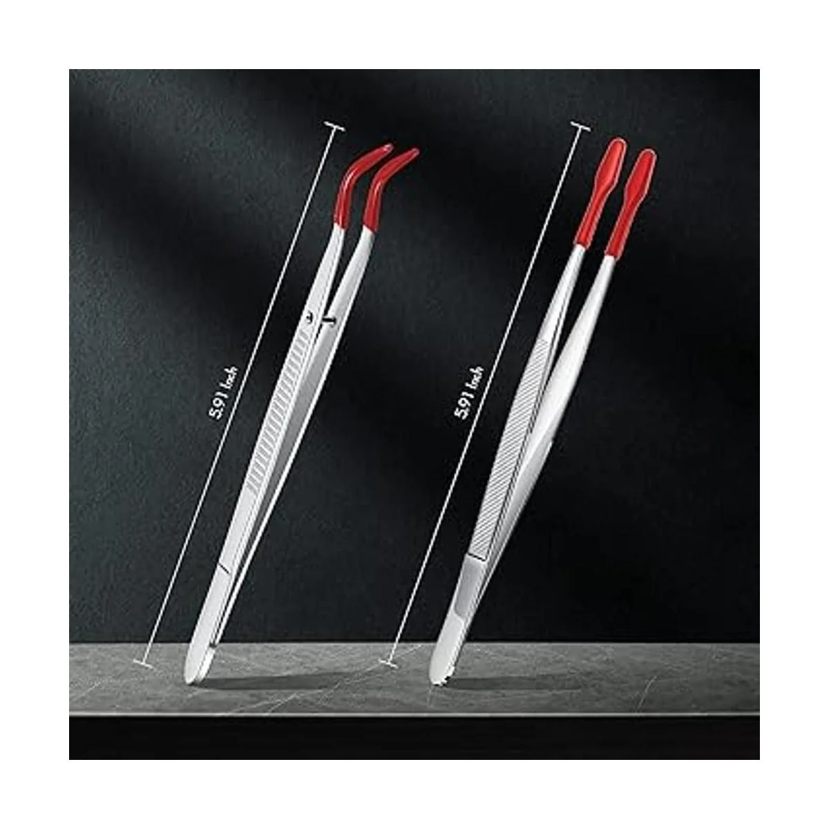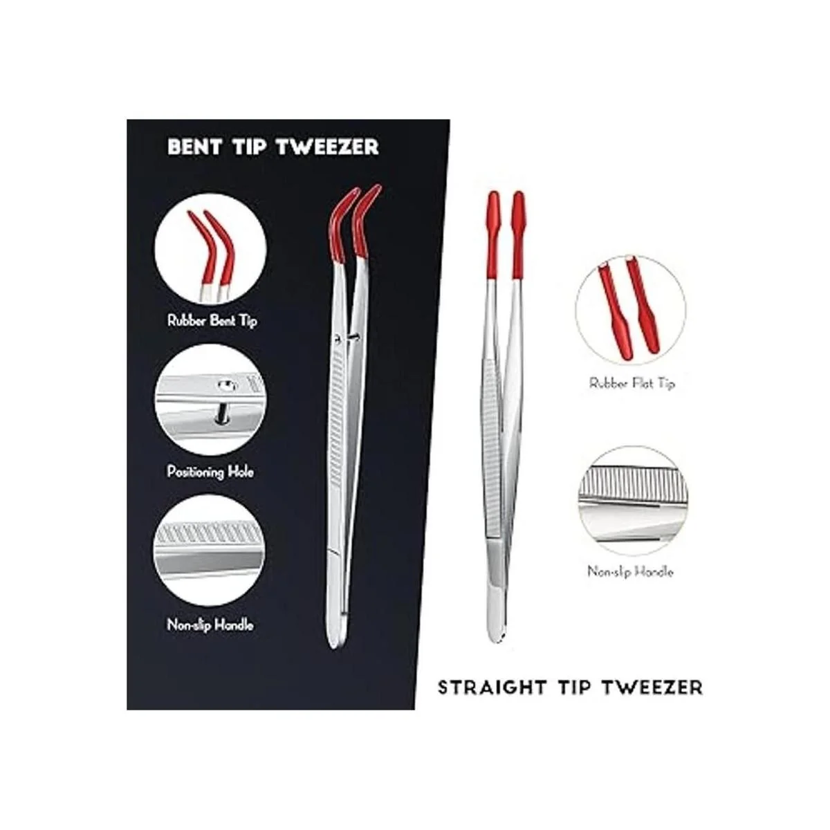 Detalles de las pinzas: las pinzas de manualidades miden aproximadamente 5.9 pulgadas de largo, una es de punta doblada y la otra es de punta plana recta, lo que proporciona un fácil manejo y un buen control; hay 2 pinzas en el paquete