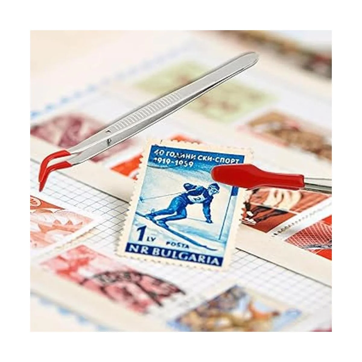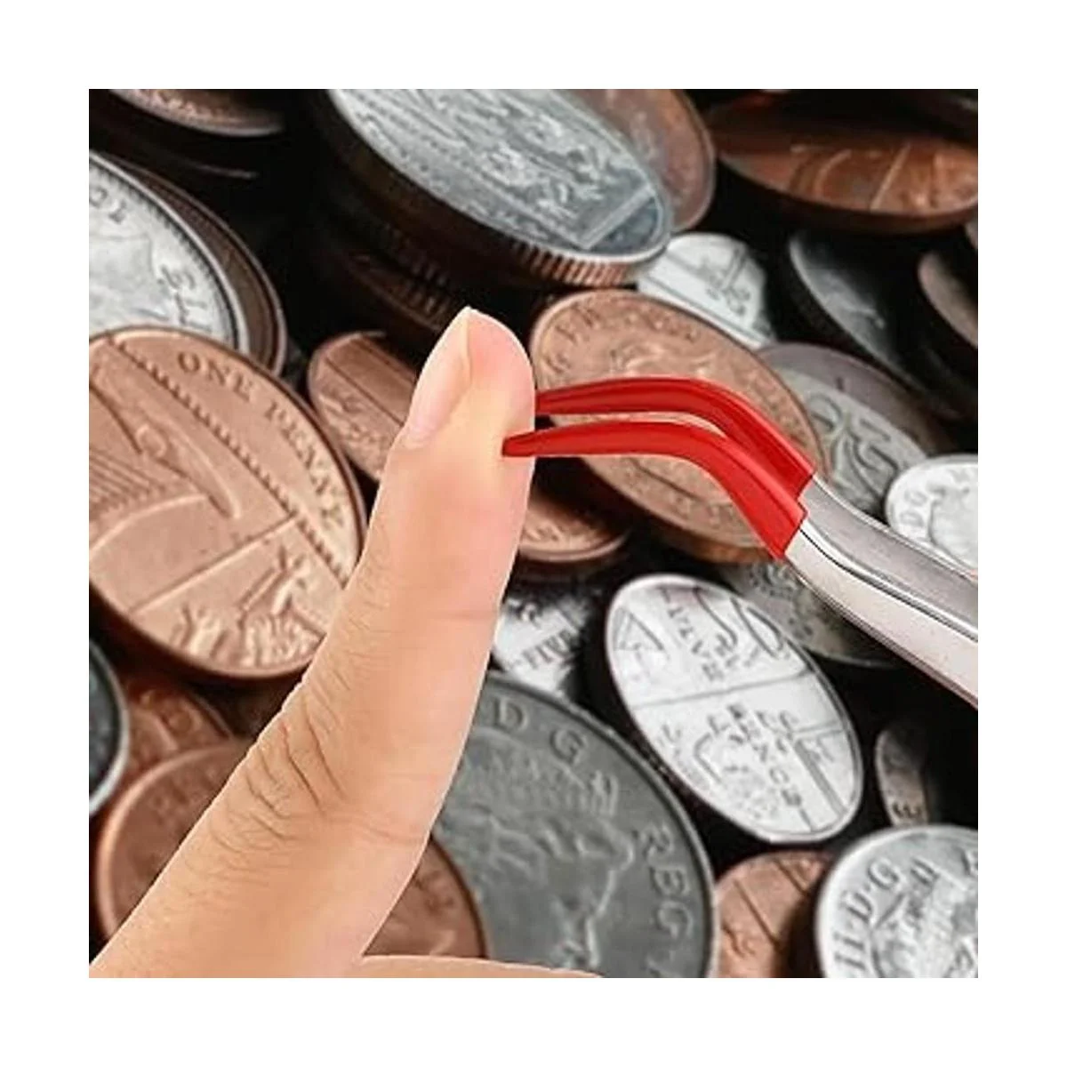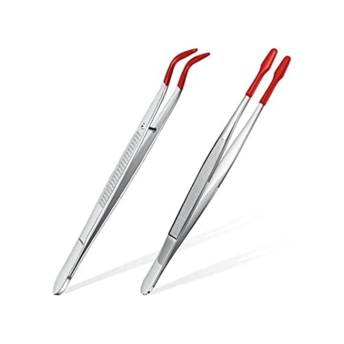 Juego de 2 pinzas con puntas de goma, puntas revestidas de goma de PVC, pinzas dobladas y rectas de punta plana, sello de monedas, joyería, manualidades, pinzas electrónicas industriales plata, rojo