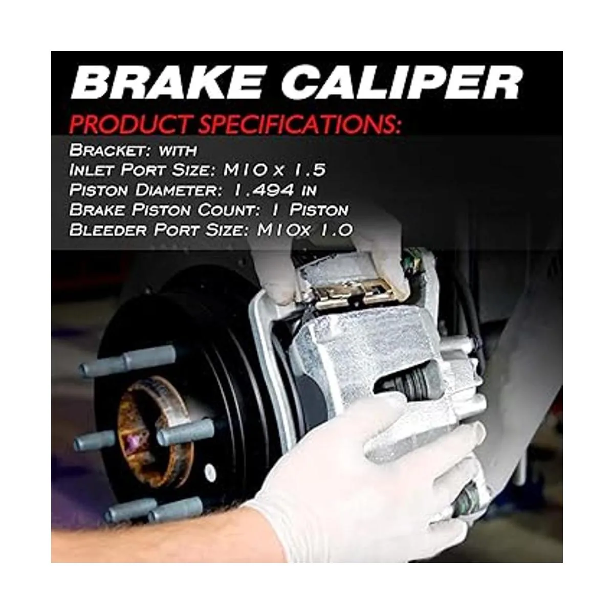 Tamaño del puerto de entrada: M10 x 1,5; Tamaño del puerto de purgador: M10 x 1,0; Diámetro del pistón: 1,494 pulgadas; Tipo de pinza de freno: 1 pistón