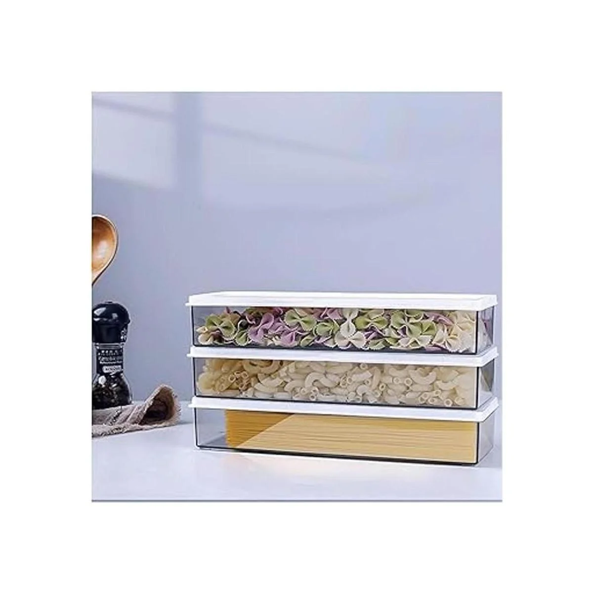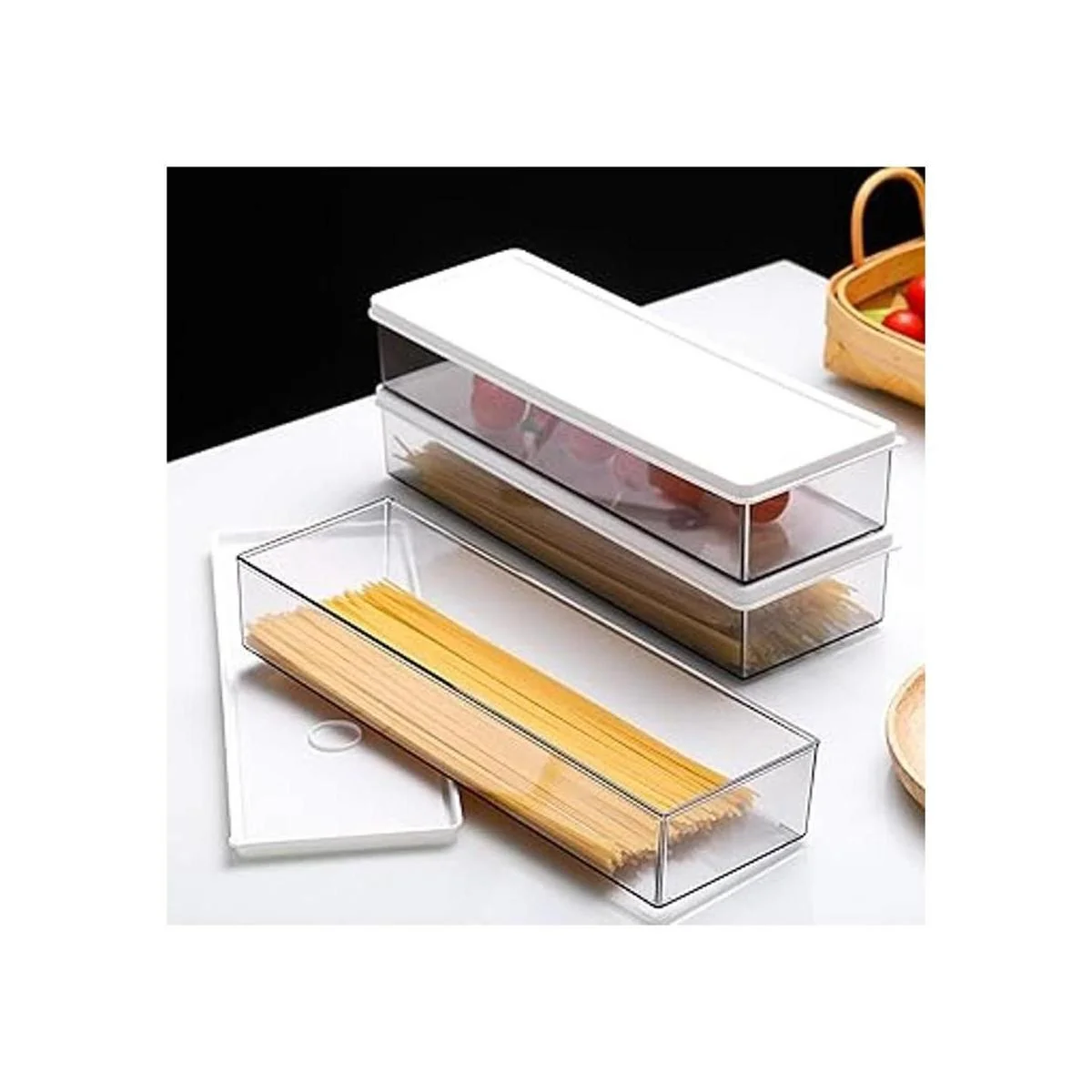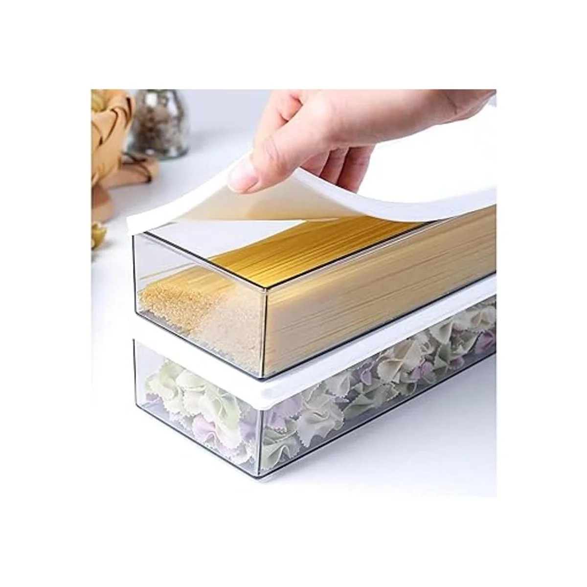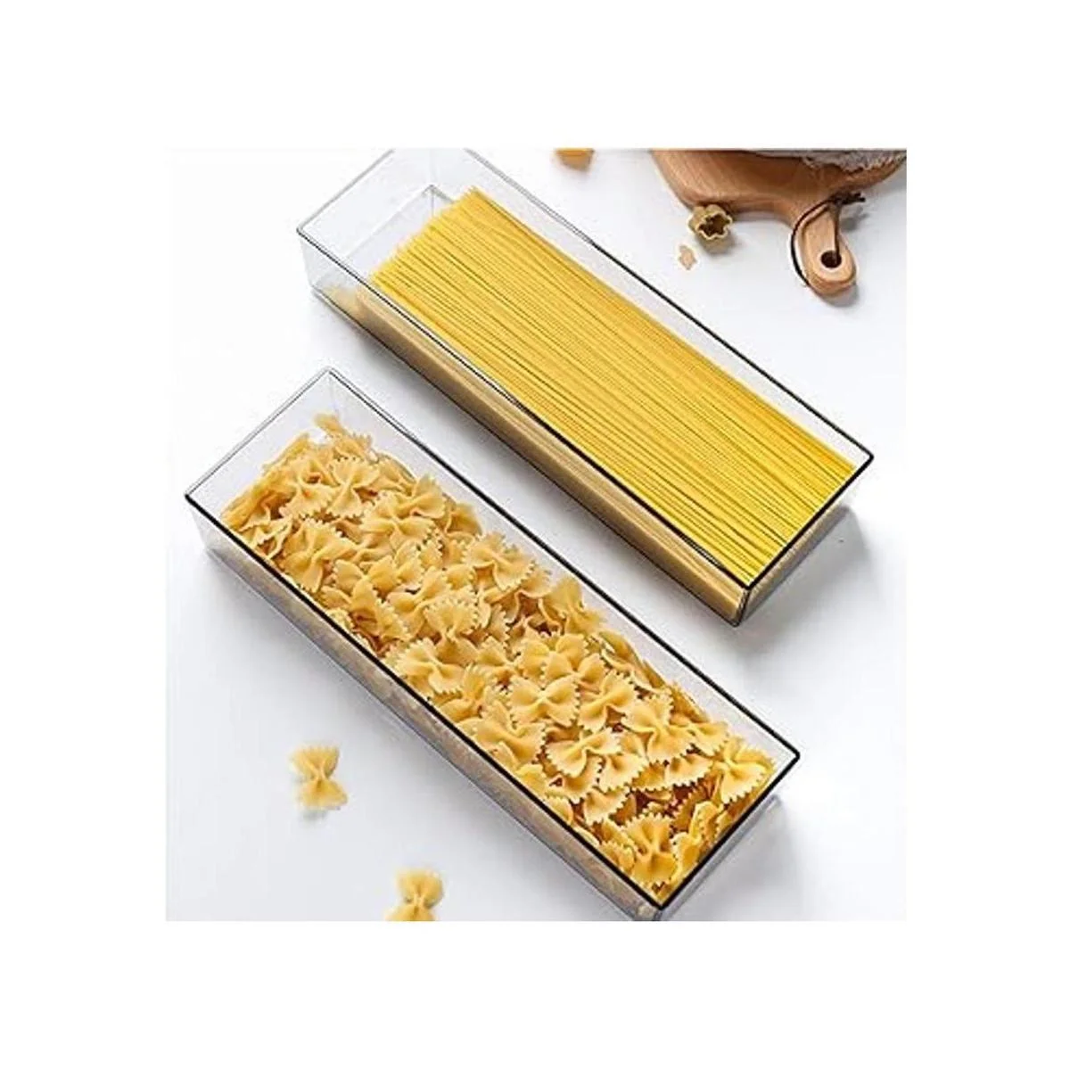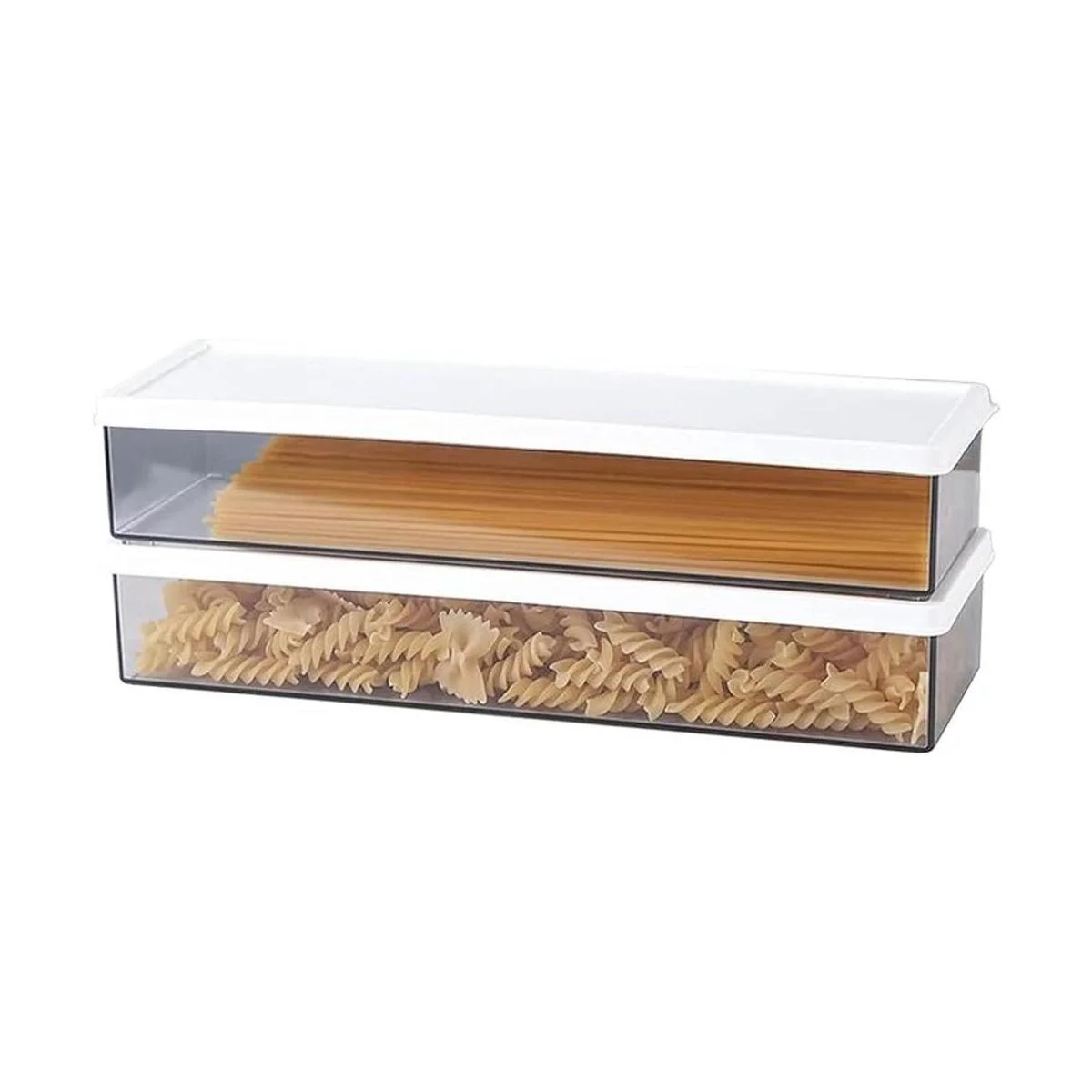 Juego de 2 recipientes de plástico transparente para almacenamiento de pasta con tapa, recipientes rectangulares para almacenamiento de espagueti, para organización de despensa de cocina