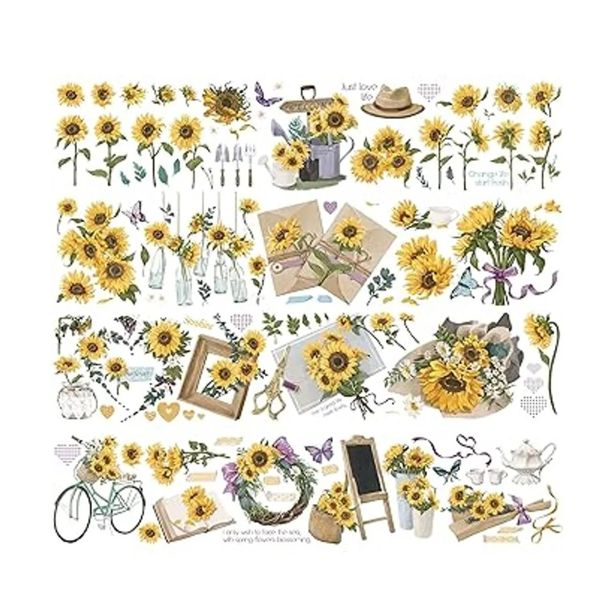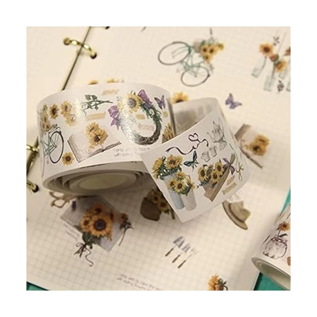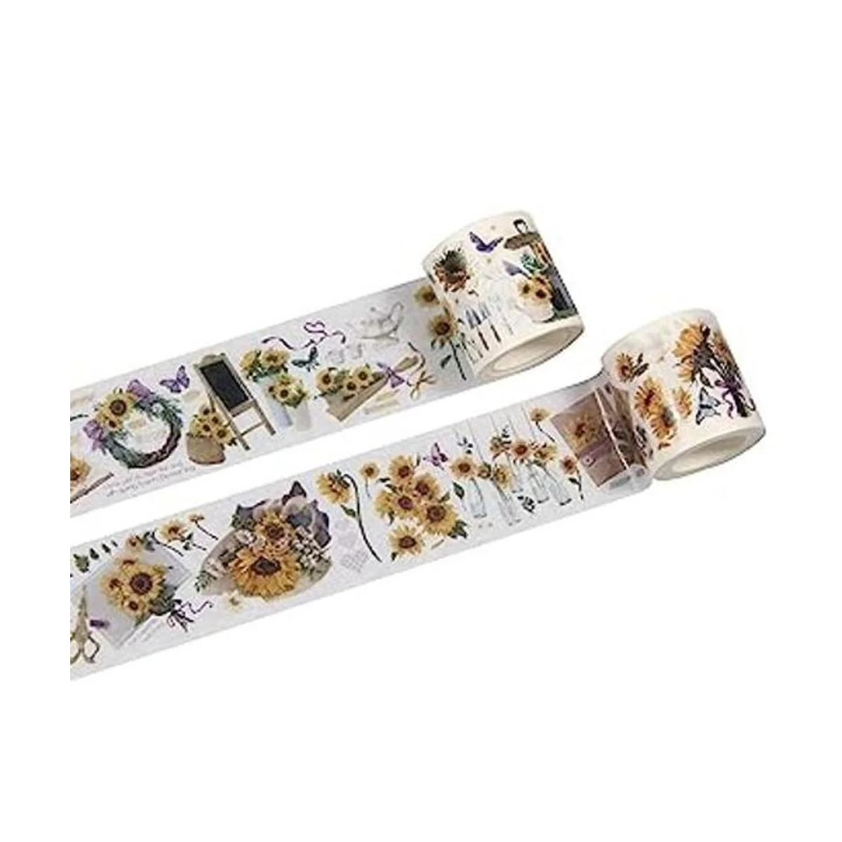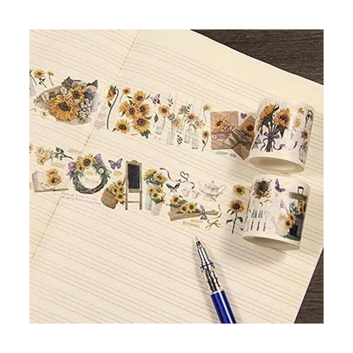 Juego de 2 rollos de cinta adhesiva decorativa de girasol vintage de 1.6 in para planificador de balas diarios DIY Scrapbooking Craft Gift Deco