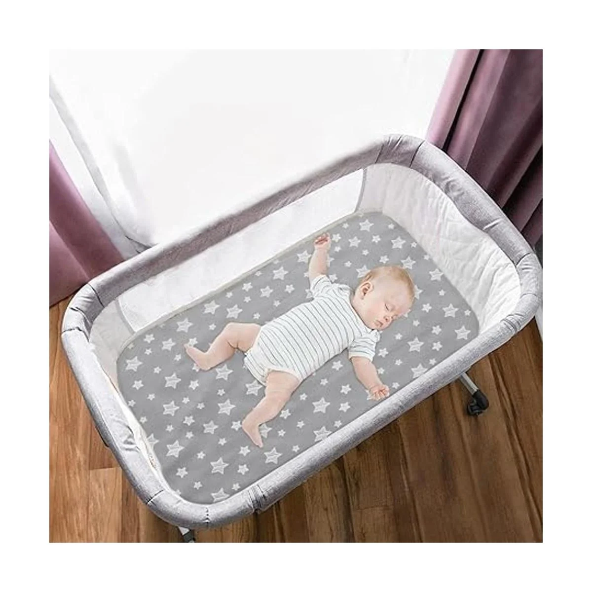 Impermeable y silencioso: la capa trasera de la sábana impermeable protege el colchón de cualquier derrame de agua o mojado de cama. Y la capa inferior de esta sábana de moisés está hecha de tela suave, que no hará ningún sonido arrugado, lo que puede proporcionar a tu bebé un ambiente tranquilo y tranquilo.