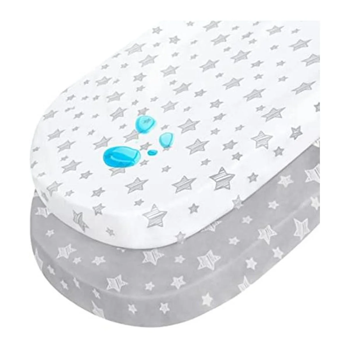 Juego de 2 sábanas impermeables para moisés tipo halo giratorio, sábana universal para colchón rectangular, ovalado, de reloj de arena, flexible para diferentes colchones de cuna y moisés