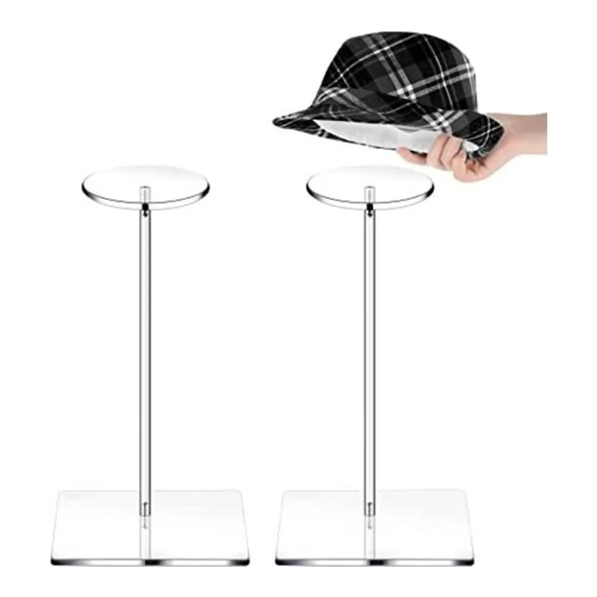Juego de 2 soportes de acrílico transparente para sombreros y pelucas, soportes para sombreros y pedestales, soporte redondo para exhibición de sombrero, pedestal, soporte para exhibición de peluca para reloj de sombrero 14 pulgadas de altura, parte inferior cuadrada