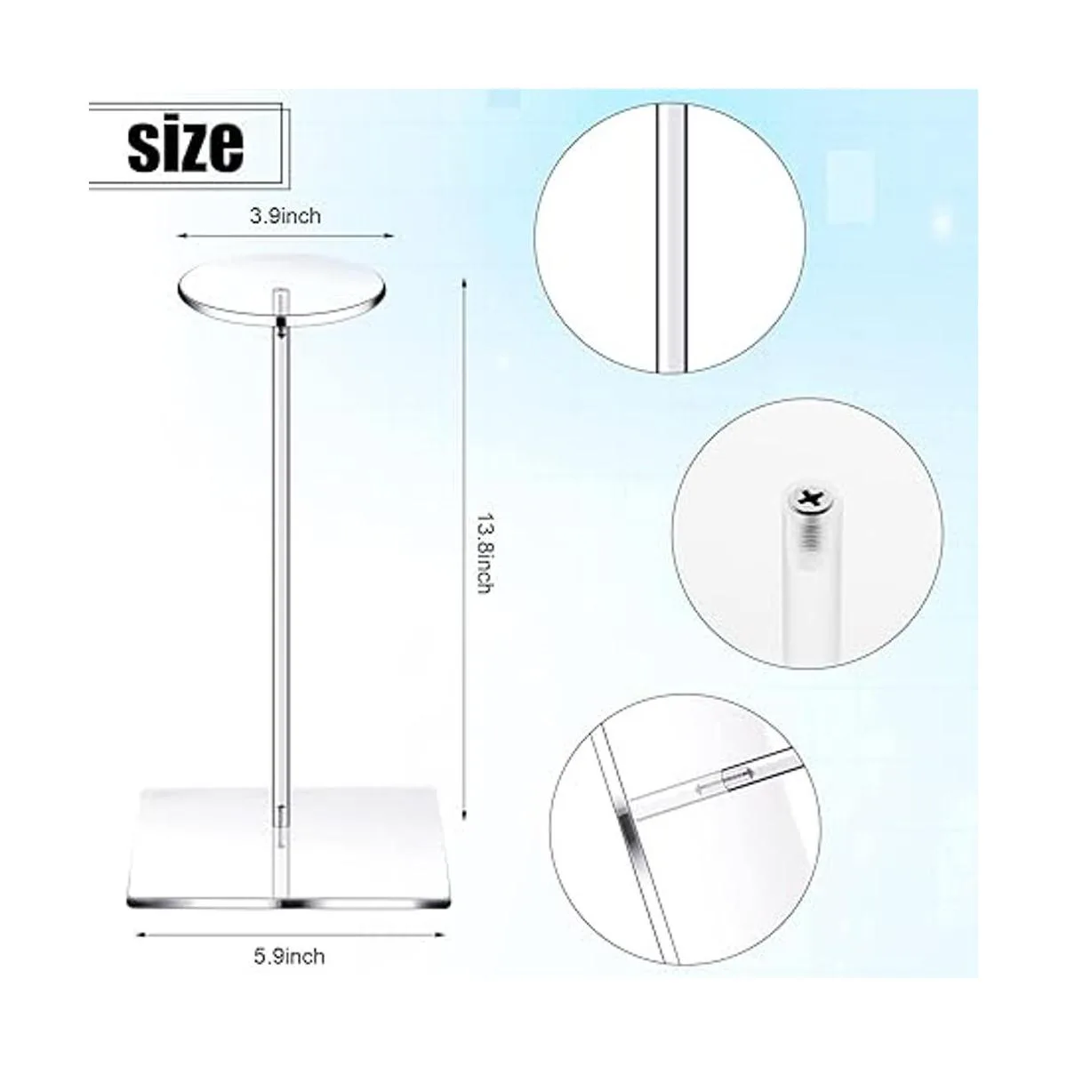 Usos prácticos: además de mostrar sombreros, gorros, estos soportes de pedestal acrílico también se pueden aplicar para sostener joyas, relojes, pelucas y algunas exhibiciones de trabajo a mano, lo que será un buen ayudante en tu vida diaria