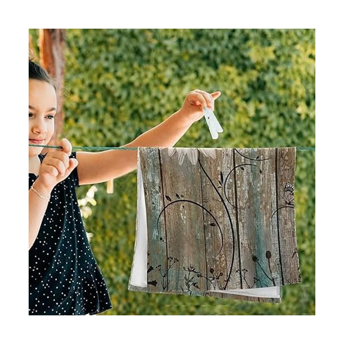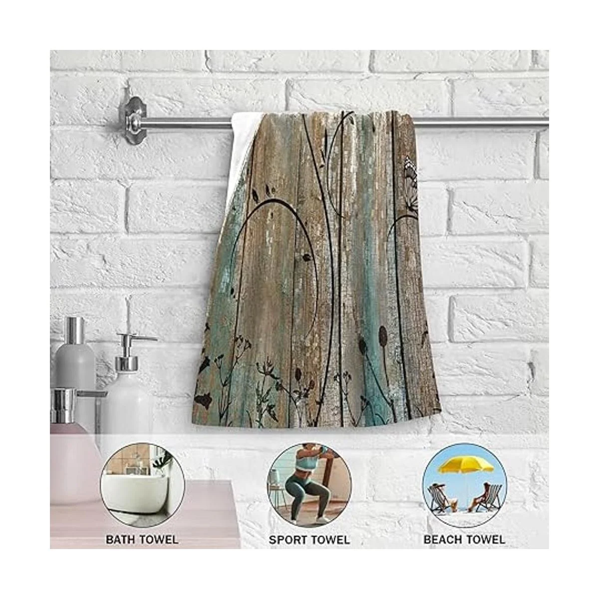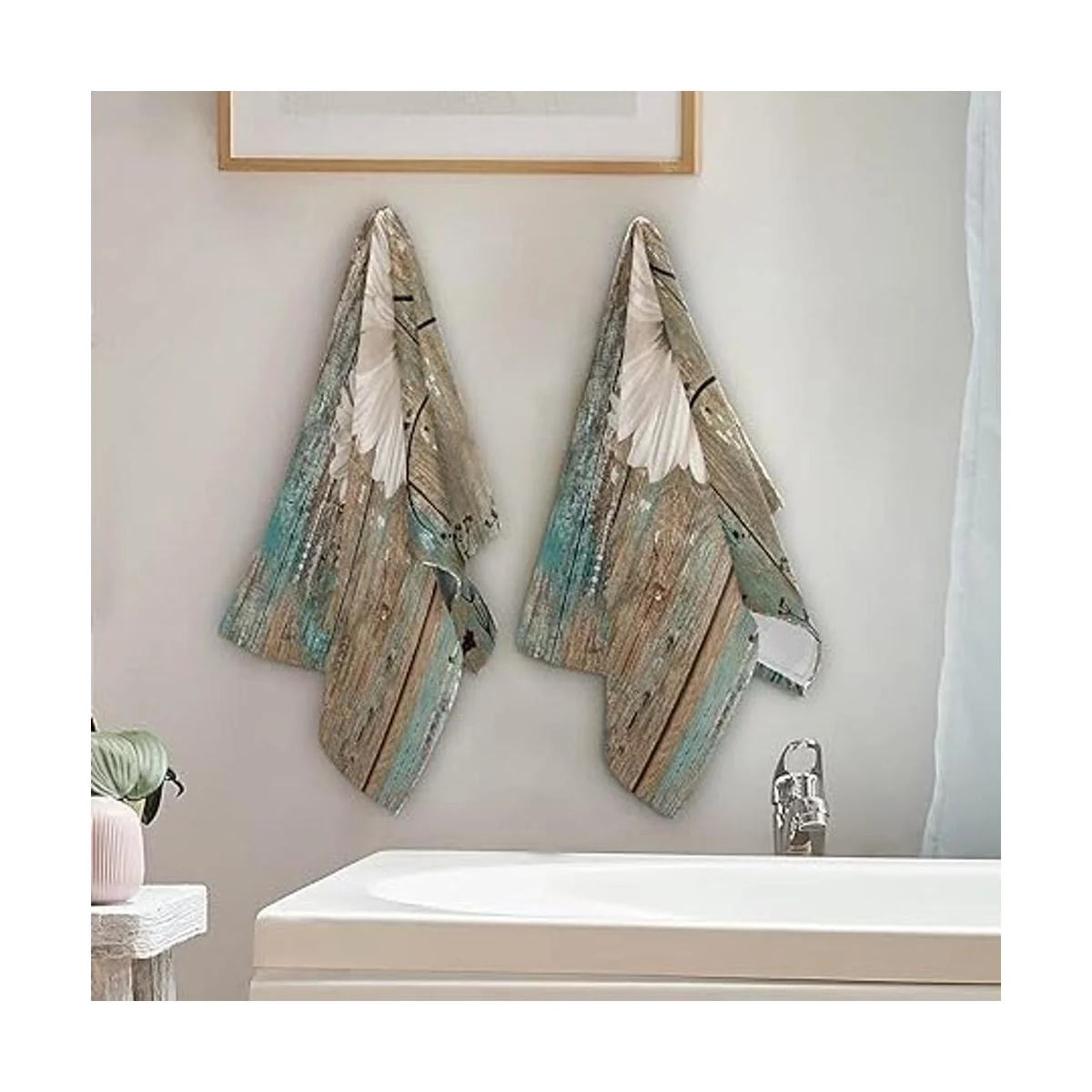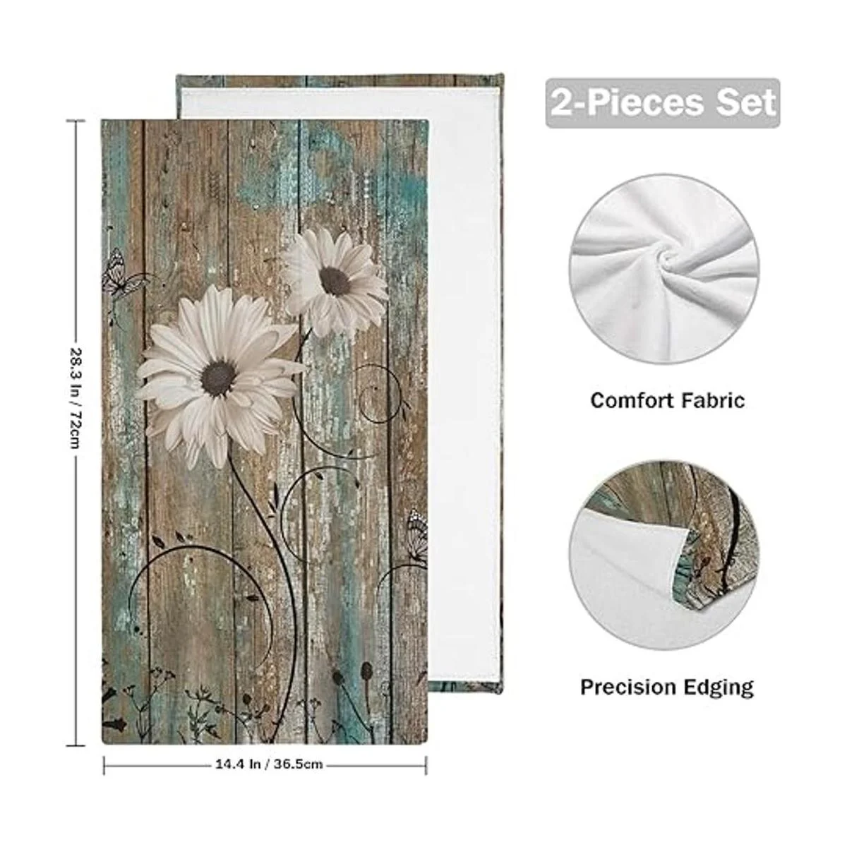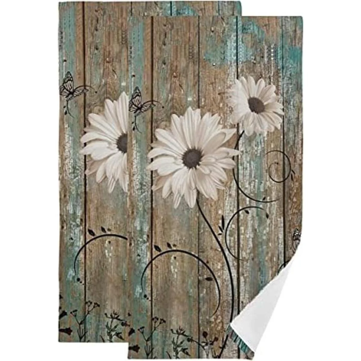 Juego de 2 toallas de mano rústicas de madera de granero de 15 x 30 pulgadas, flores de margaritas de otoño, verde azulado, turquesa, marrón, tablón, toalla de cara retro, toalla de madera de granero para baño, cabaña de troncos
