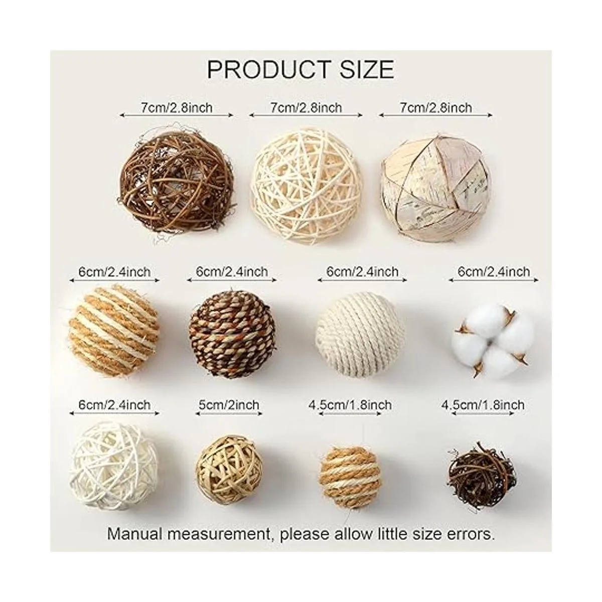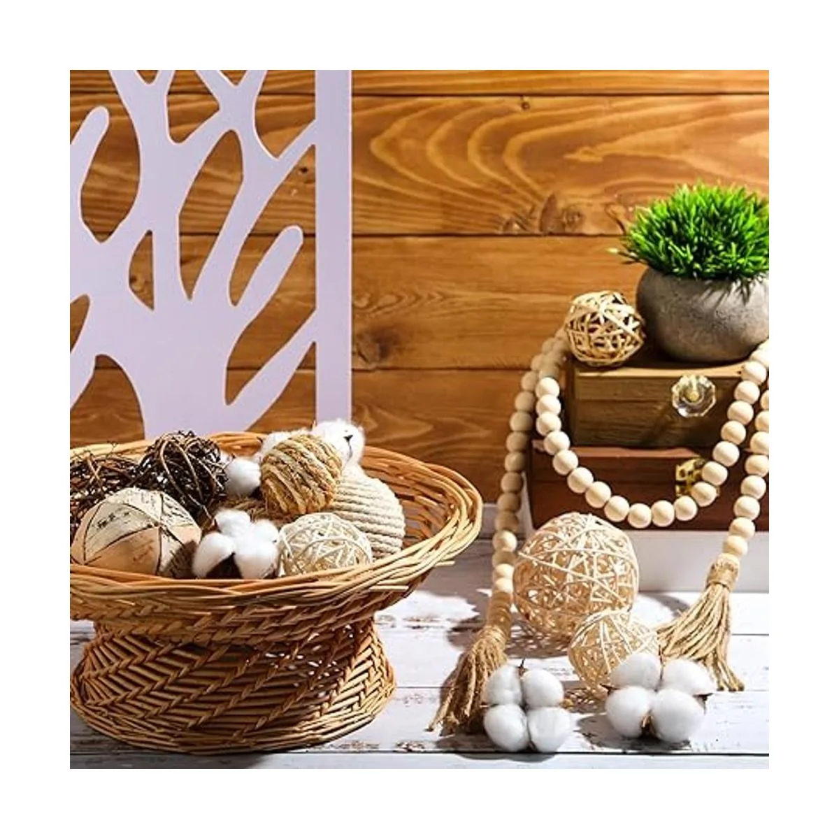 Materiales de calidad: todas estas modernas decoraciones de granja utilizan decoraciones de calidad; estas bolas decorativas surtidas están hechas de ratán de calidad, cuerda de arpillera y algodón artificial; las cuentas de madera están hechas de cuentas de madera y arpillera; nuestro juego de bolas decorativas puede darte una sensación fresca y fresca