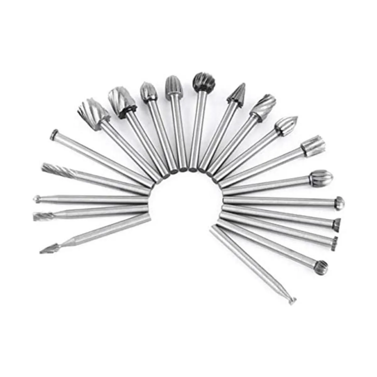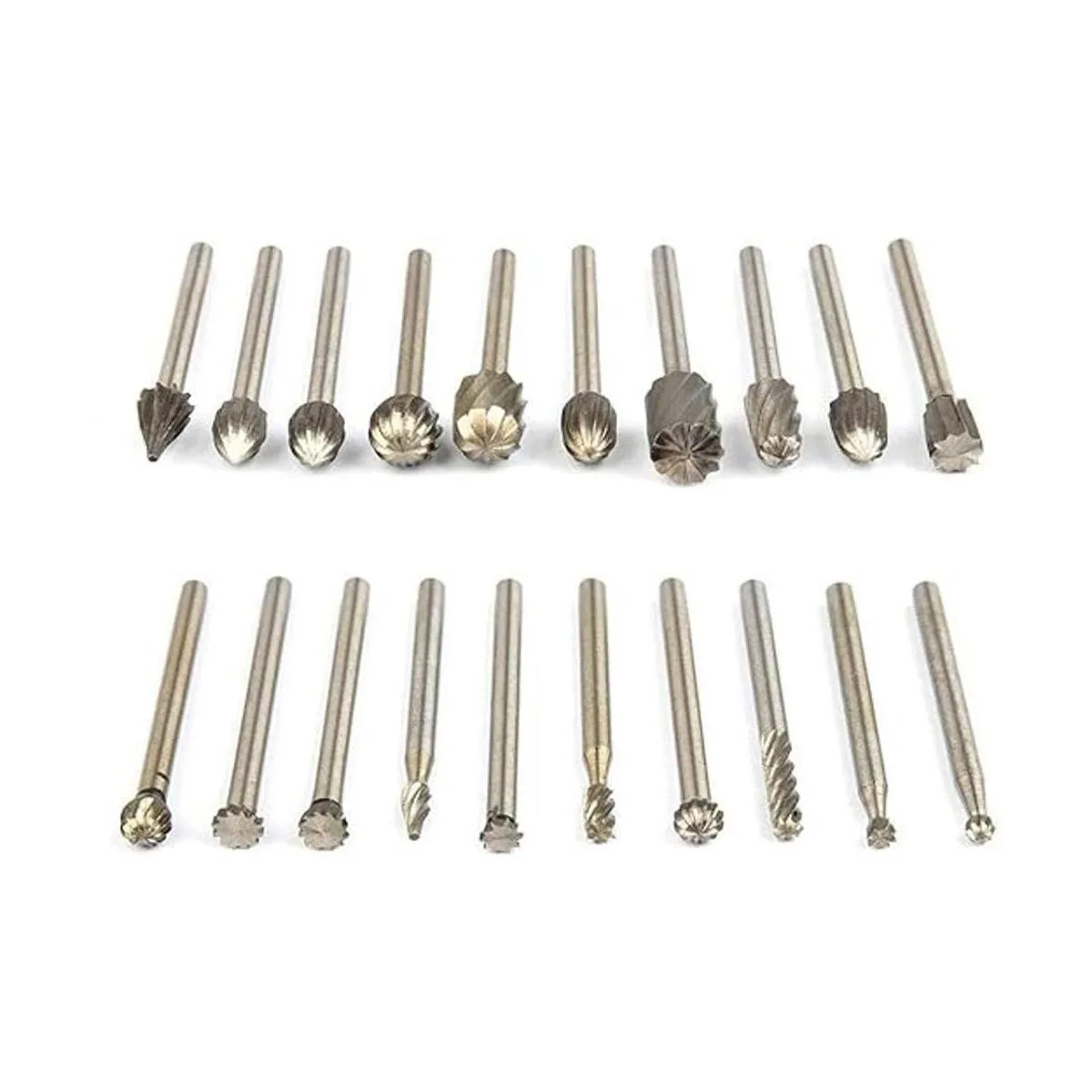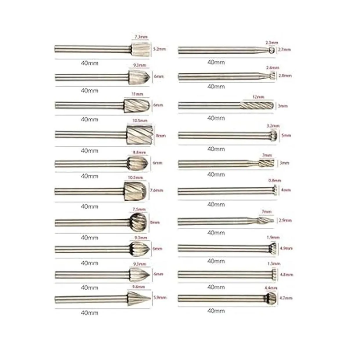 20 herramientas diferentes, incluyendo: rebabas, cabezal de molienda y herramientas de fresado, etc. Satisface la mayoría de tus necesidades de perforación, apto para grabado, biselado, ranurado, escariado, mecanizado hueco