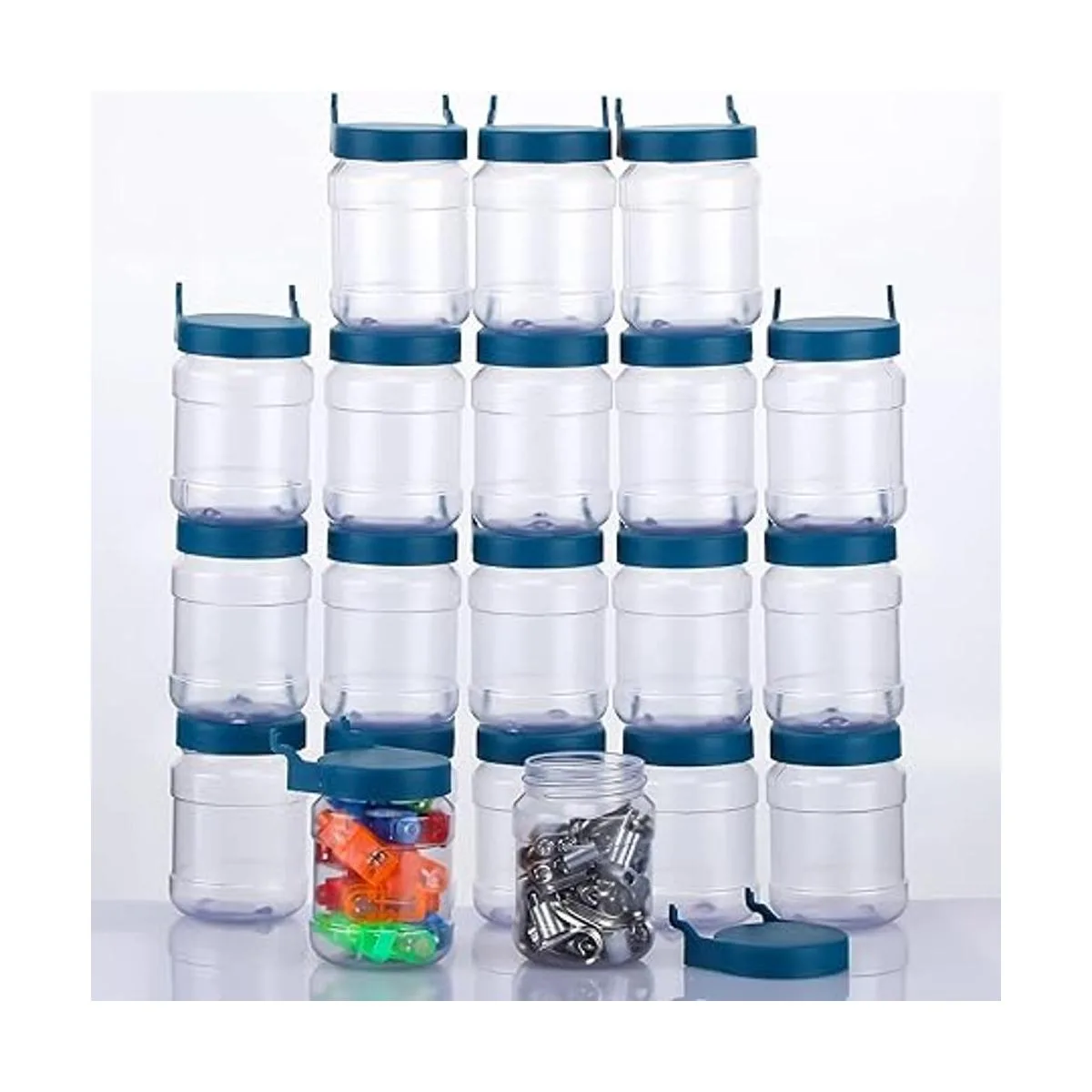 Juego de 20 tarros de accesorios para tablero de clavijas con tapas, organizador de almacenamiento de plástico para garaje, manualidades, sala de costura, resistente a los impactos, color azul oscuro