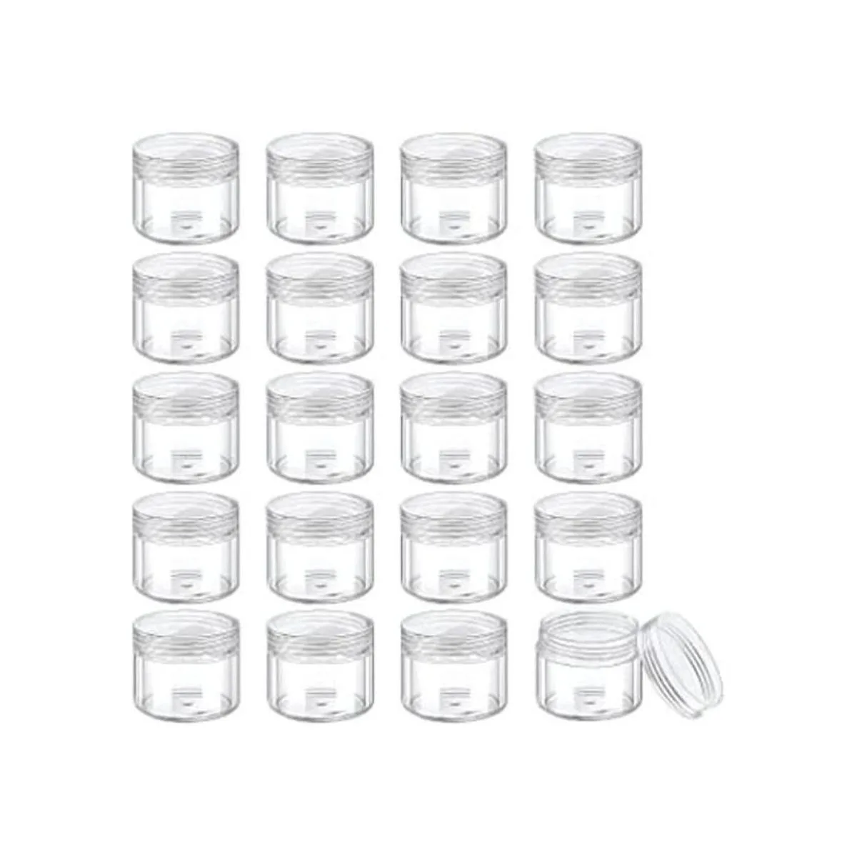 Juego de 20 tarros redondos de plástico con tapa para crema líquida, 0.7 fl oz (tapa transparente)