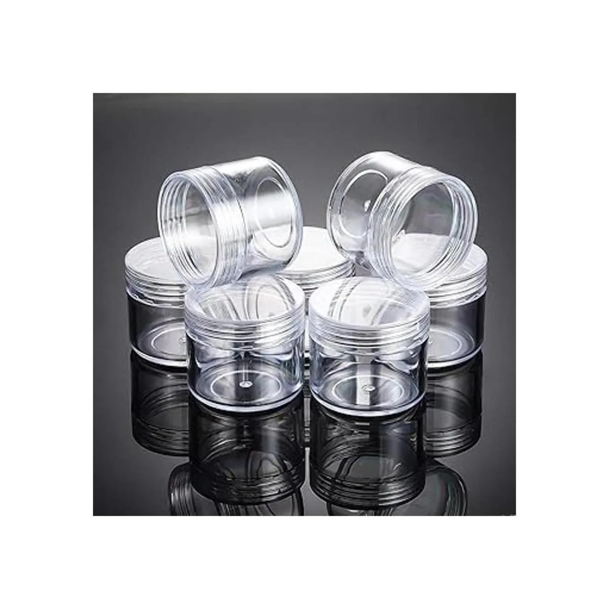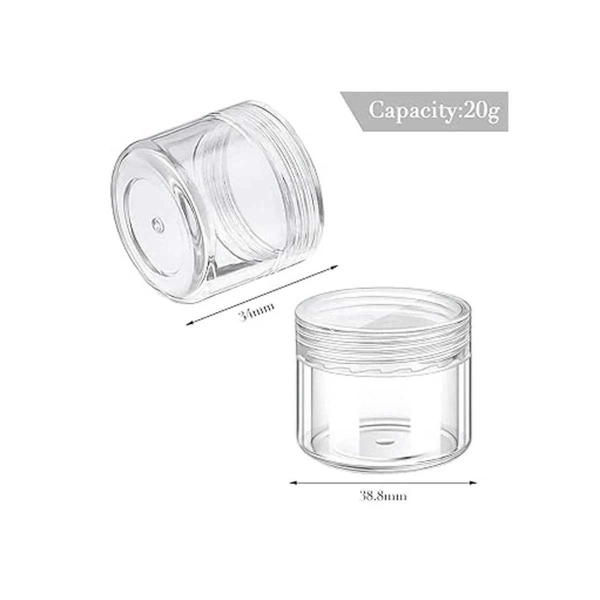 Medidas de los frascos: los tarros son de aprox. 1.5 in de diámetro, 1.2 in de altura, y su volumen es de 0.71 oz, cuerpo transparente con tapa transparente
