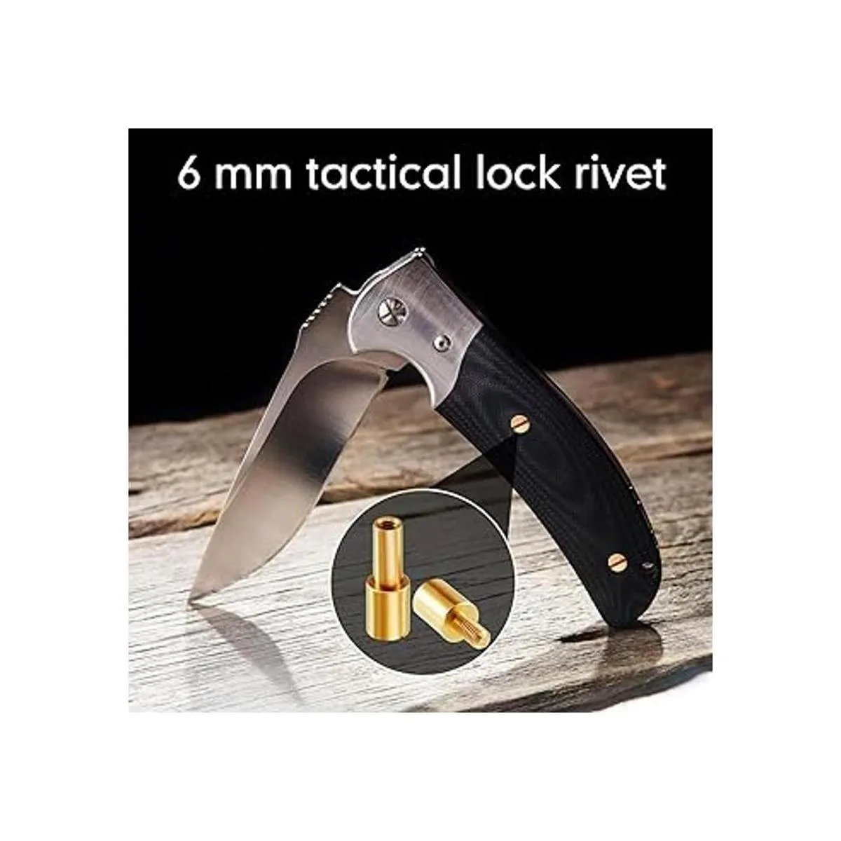 Juego de 20 tornillos de latón para tornillos de cabeza de herramienta, diámetro de 0.236 in, remaches tácticos de bloqueo, pasadores de mango de cuchillo EDC, tornillos de cuchillos, suministros para fabricación de cuchillos, remaches ciegos dorado