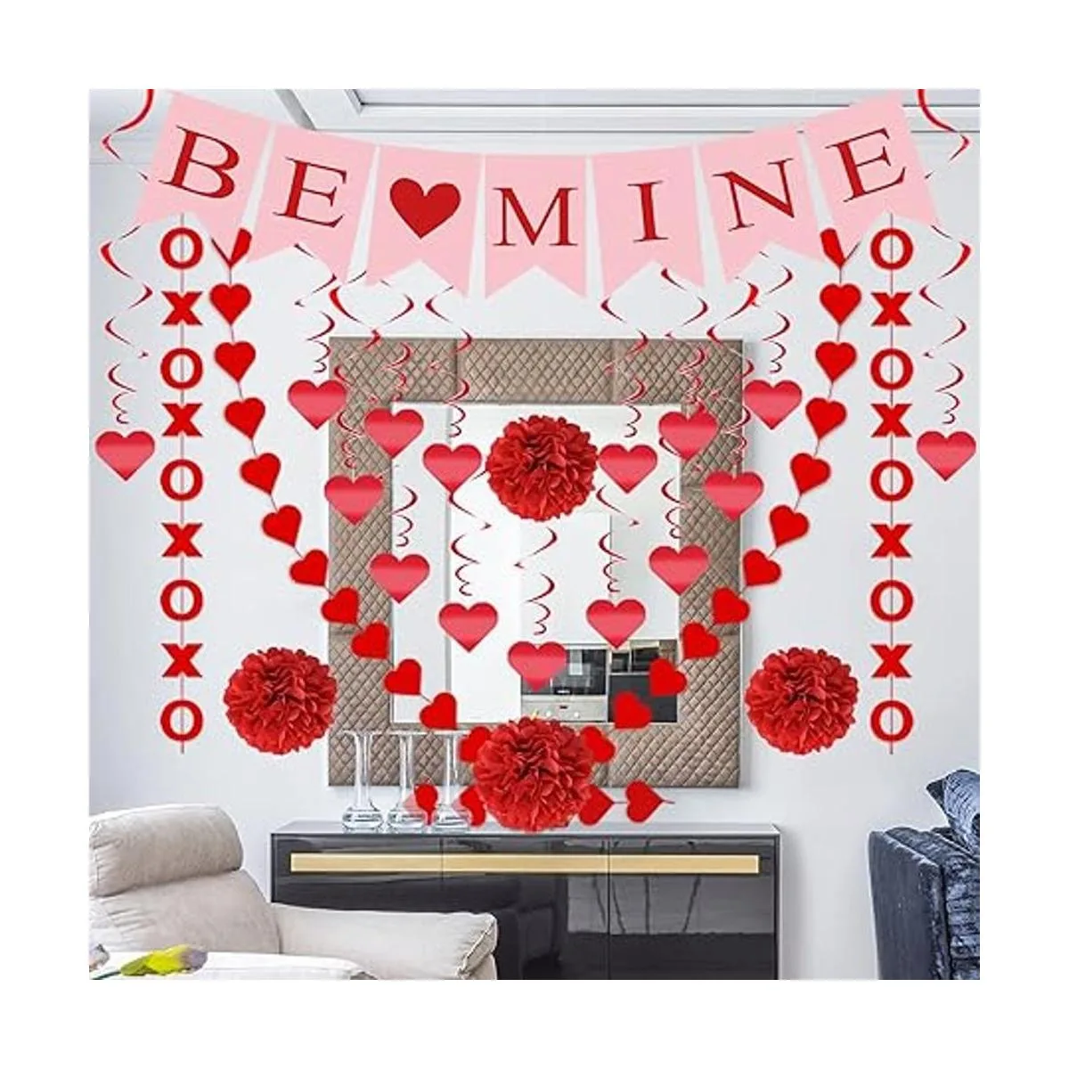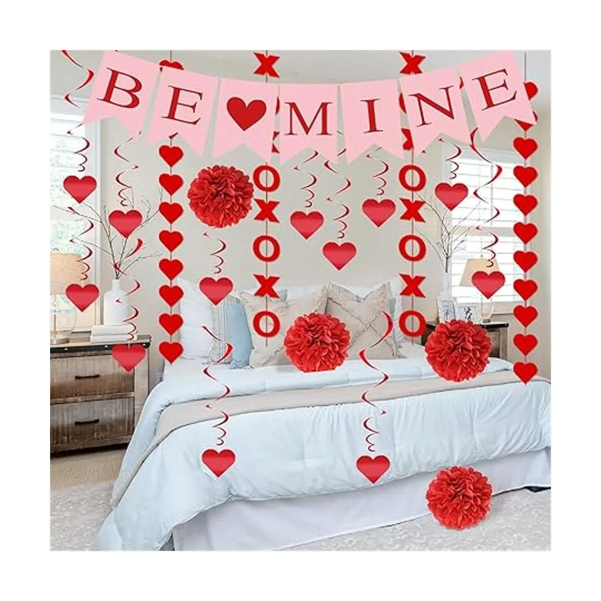 Bien diseñado: el paquete incluye 1 cuerda de pancarta BE MINE, 12 remolinos de corazón, 4 bolas de papel, 2 cuerdas XO y 2 cuerdas de corazón. La cuerda mide aproximadamente 10 pies, cada pancarta de amor de 7.1 x 5.2 pulgadas, corazón y cuerdas XO de 6.5 pies. Tamaño perfecto para decoración del hogar o fiesta, convirtiendo fácilmente una habitación o lugar en una celebración de amor.