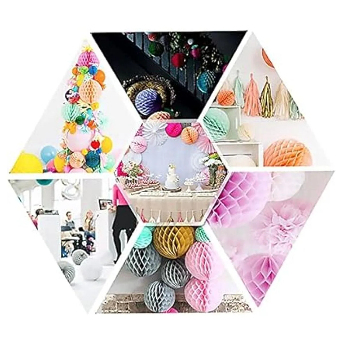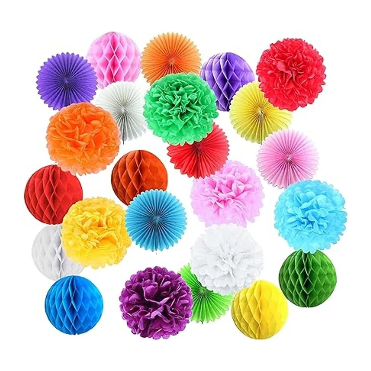 Juego de 24 colores para decoración de fiestas, bolas de panal, pompones de papel, abanicos de papel para fiestas de cumpleaños, decoraciones de boda, decoración del hogar, fiesta o fiesta mexicana