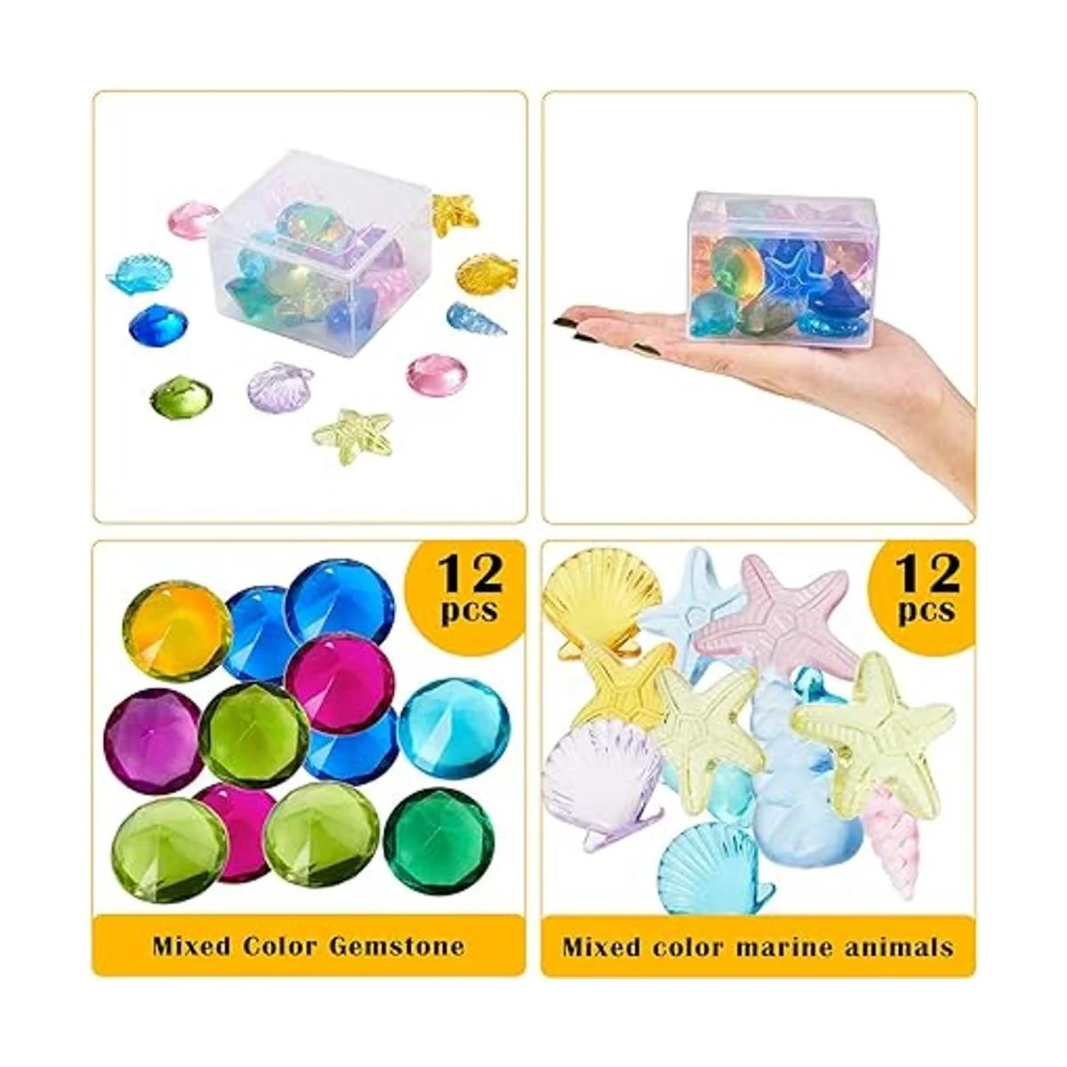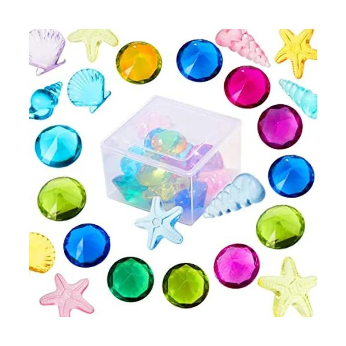 Juego de 24 joyas de buceo para piscina, juego de diamantes coloridos con temática oceánica, animales marinos, gemas de verano, natación, juego de juguetes de buceo, piedras preciosas acrílicas para uso en piscina, recuerdos de fiesta en la piscina, empaquetado en caja transparente estilo retro