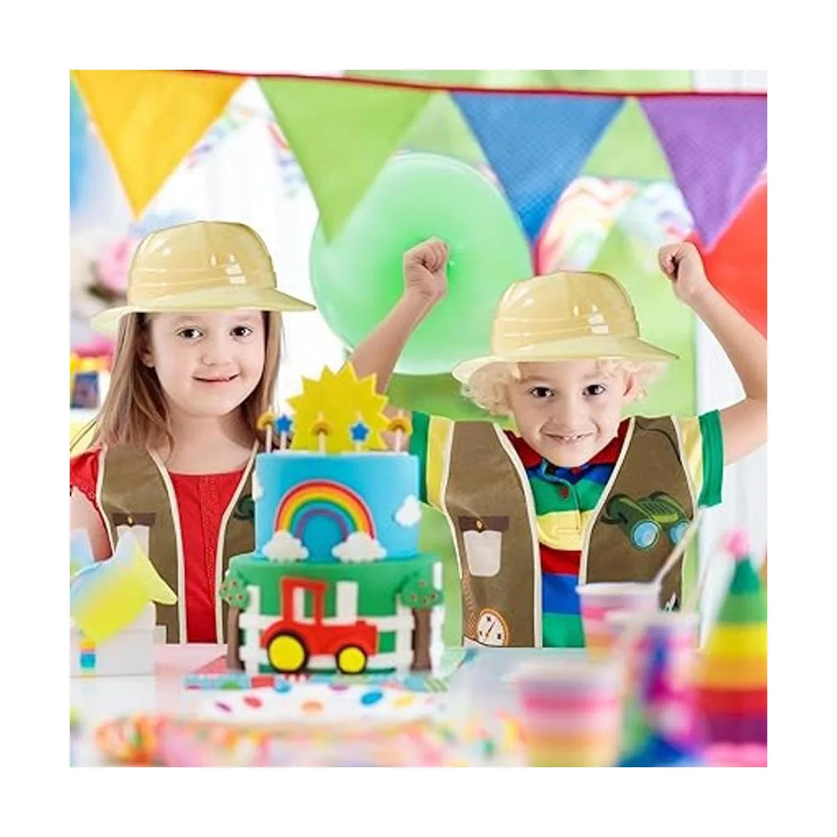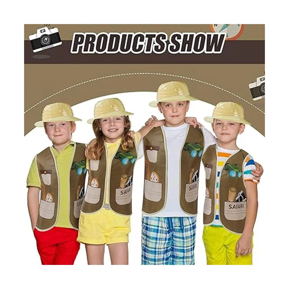 Juego de 24 piezas para fiestas de safari para niños, juego de disfraces para exteriores, incluyendo chaleco de aventura y sombreros de plástico, bolsa de mano, disfraz de fiesta de zoológico de selva para niños pequeños, recuerdos de fiesta de cumpleaños