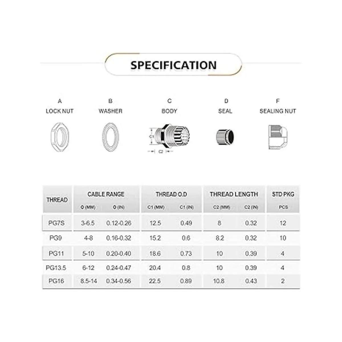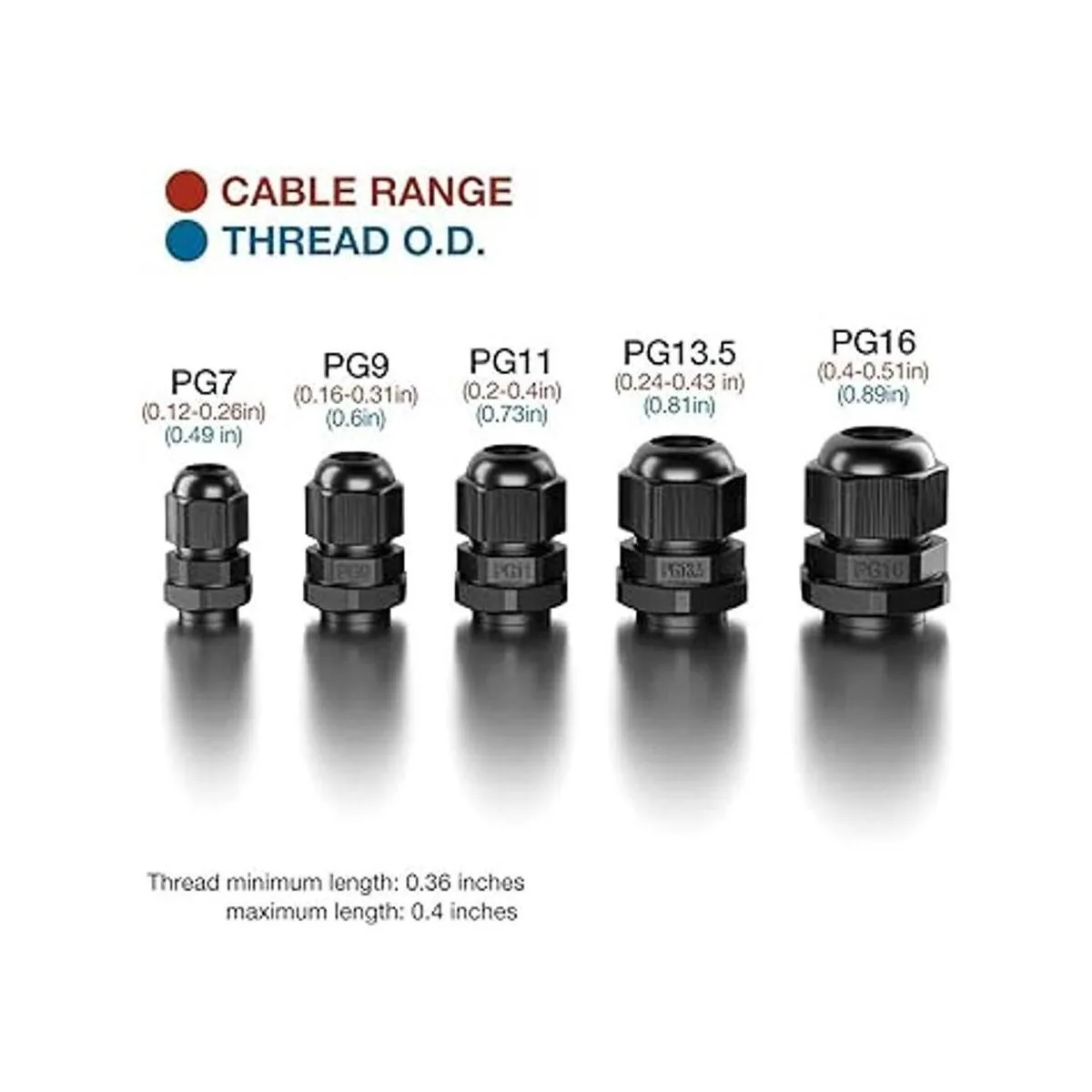 Contenido del paquete: 25 prensaestopas 5 x PG7; 5 x PG9; 5 x PG11; 5 x PG13.5; 5 x PG16. Satisface tus diversas necesidades