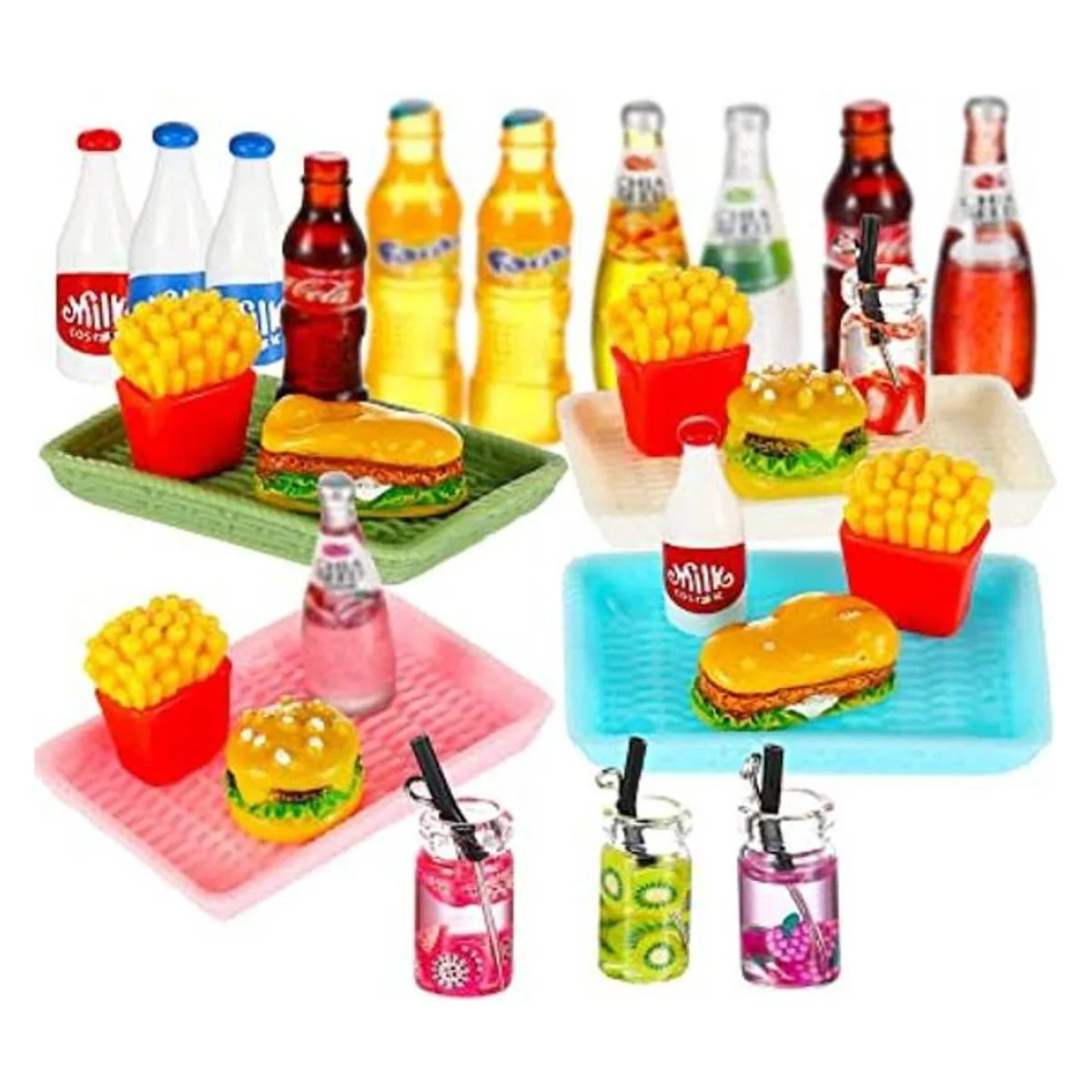 Juego de 28 piezas de comida rápida para casa de muñecas, mini bebida de alimentos, juguetes de comida en miniatura, casa de muñecas mixta, comida en miniatura, hamburguesa, papas fritas, jugo de leche, juego de simulación, juguetes pequeños para mini casa de muñecas