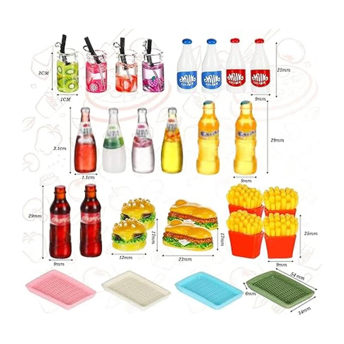 Lo que obtendrás: hay 28 piezas de juguetes de resina para bebidas, incluyendo 24 mini alimentos y 4 bandejas pequeñas, que están en estilos clásicos; diseñado en colores vivos, la mini comida para muñecas parece comida real, llama fácilmente la atención de los jugadores