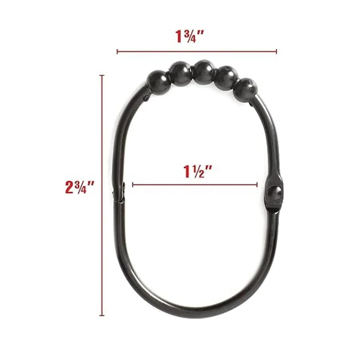 Juego de 2LB Depot de anillosganchos de cortina de ducha, acabado negro decorativo, rodillos fáciles de deslizar, 100 acero inoxidable inoxidable, juego de 12 anillos para barras de ducha