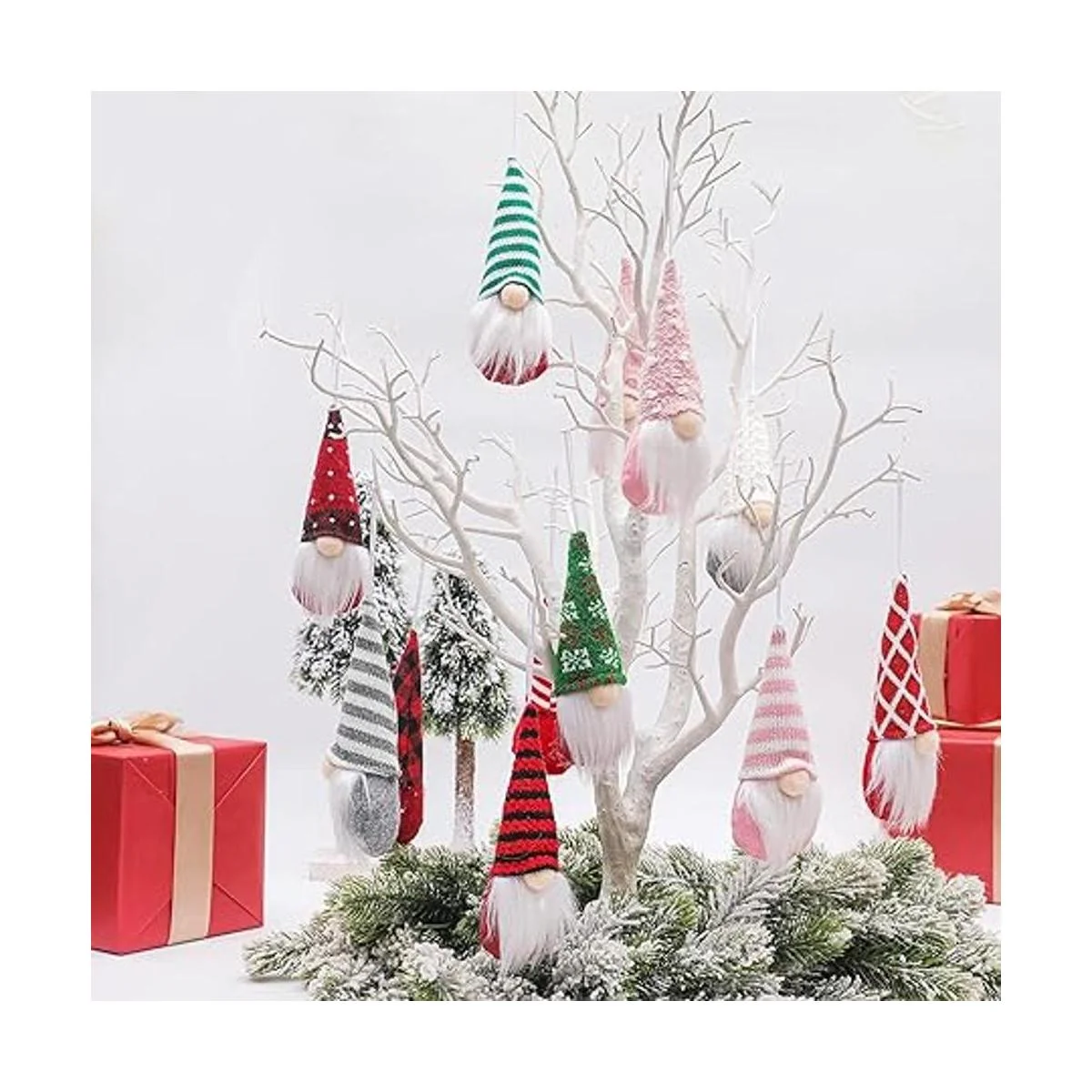 Adornos de Navidad y decoraciones de árbol: el diseño de gnomo sin cara hace que los adornos colgantes de gnomo sean ideales para Navidad para añadir ambientes divertidos y festivos. Equipado con una cuerda para colgar, los adornos de Navidad colgantes son la decoración perfecta para árbol de Navidad, chimenea, ramas de árbol, ventana, etc. ; Estas mini figuras decorativas de gnomos pueden aumentar en gran medida el nivel de ternura en tu decoración navideña.