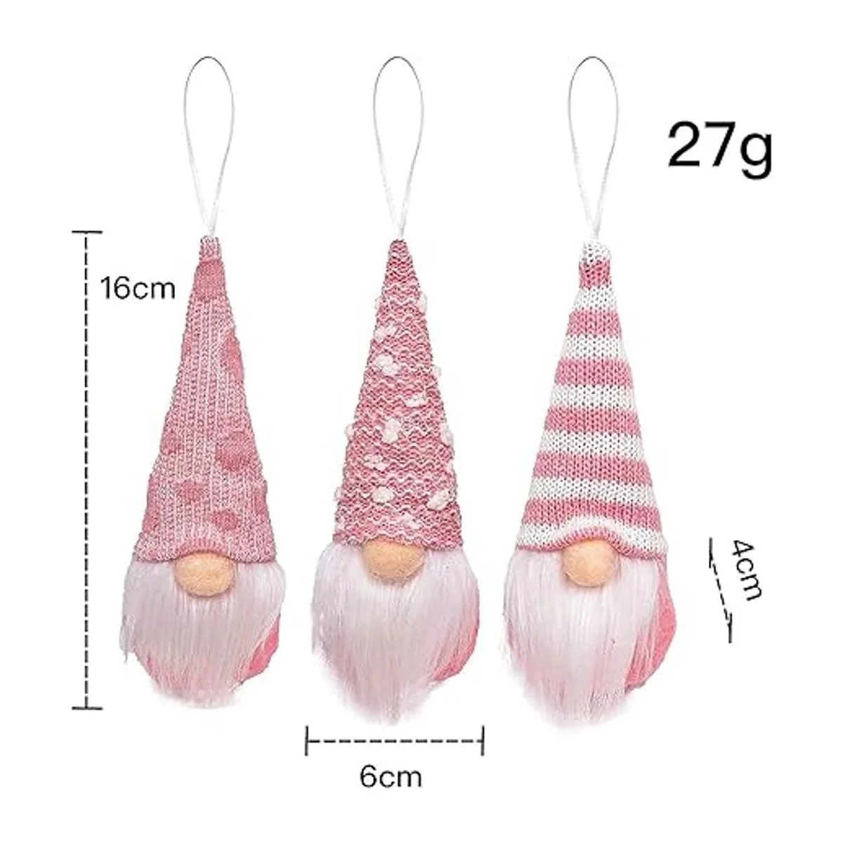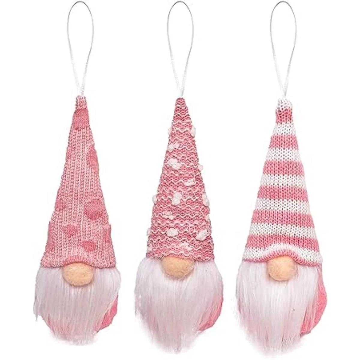Juego de 3 adornos de Navidad de gnomos, adornos de árbol de Navidad, gnomos de Papá Noel, muñecos de felpa decorativos para fiestas de Navidad, gnomos sin cara, adornos de elfo, decoración de vacaciones, decoración del hogar gnomos rosos