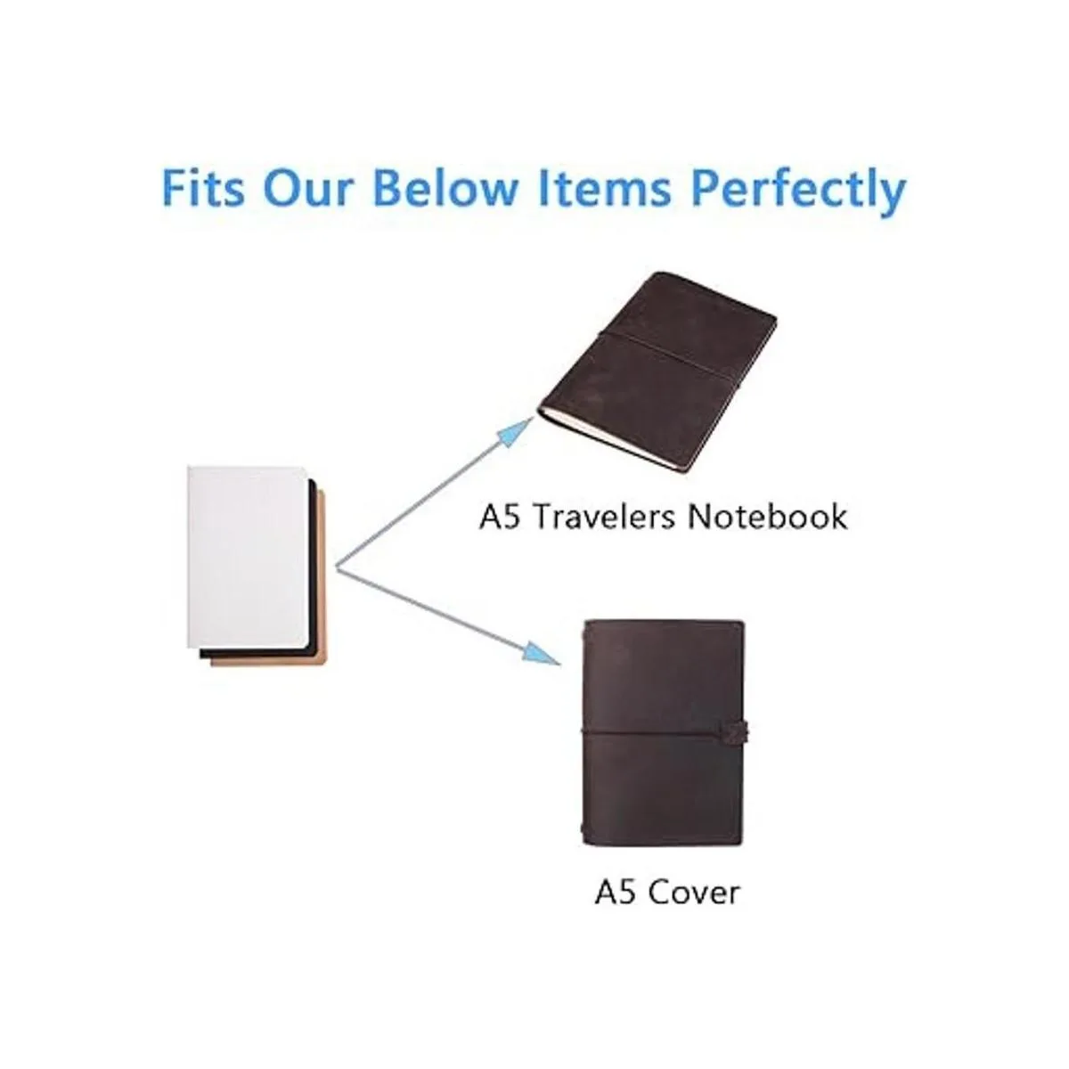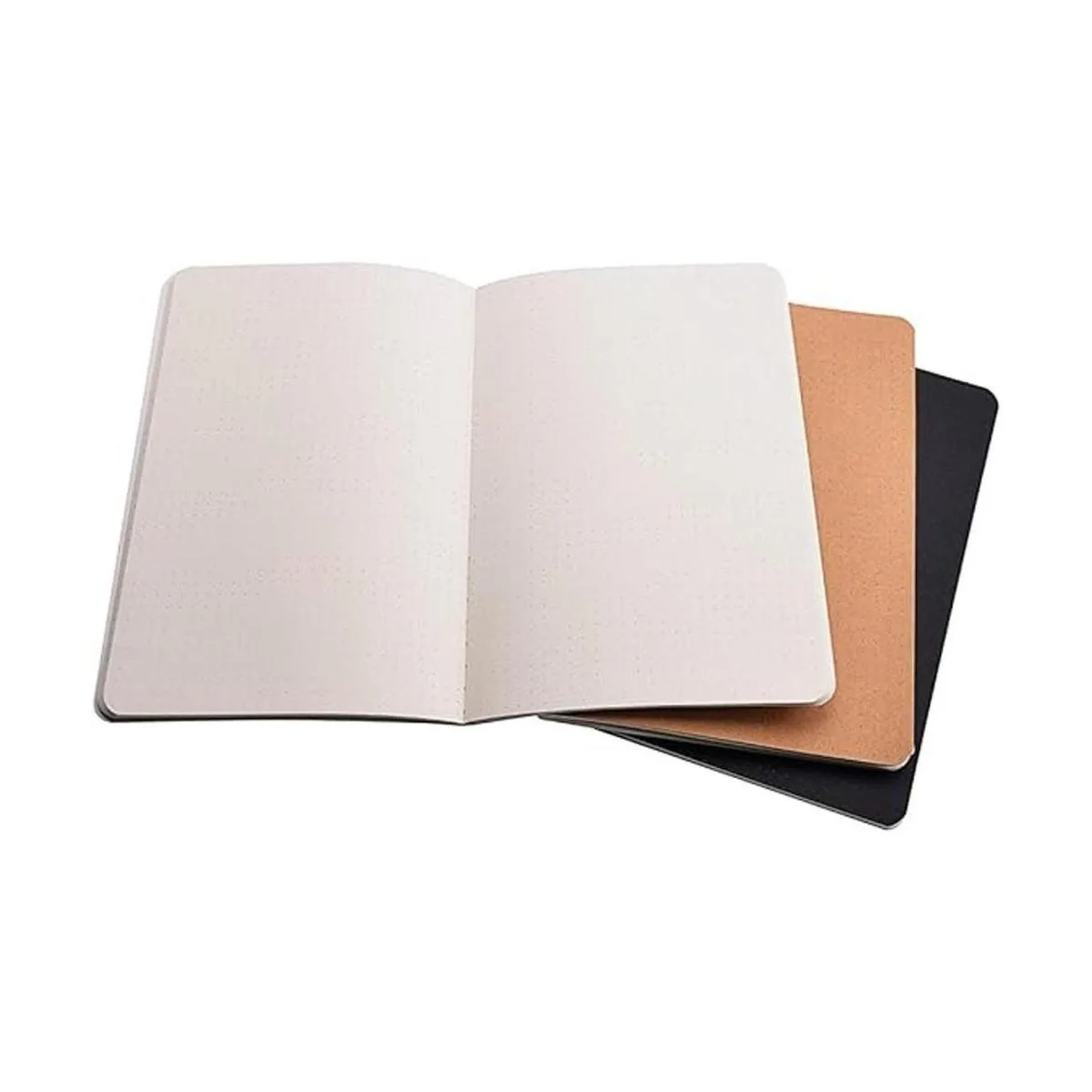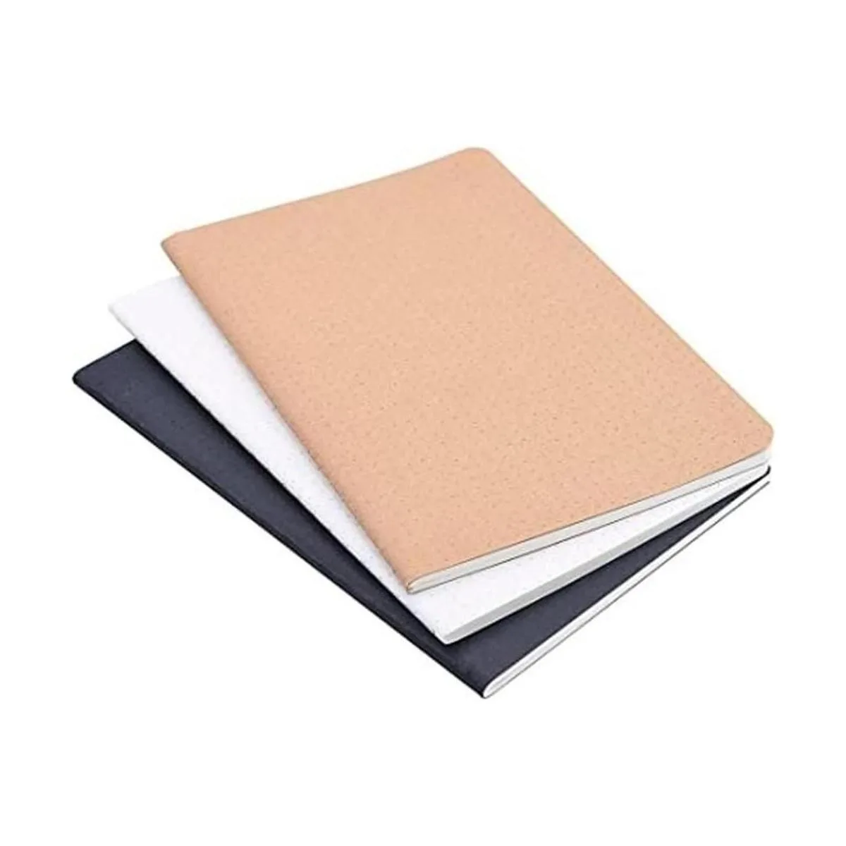 Juego de 3 cuadernos de anotaciones y libro de viaje tamaño A5, de 5.5 x 8.25 de papel cuadriculado para anotaciones personales, de 120 hojas, 240 páginas, tapa color negro, blanco y marrón claro